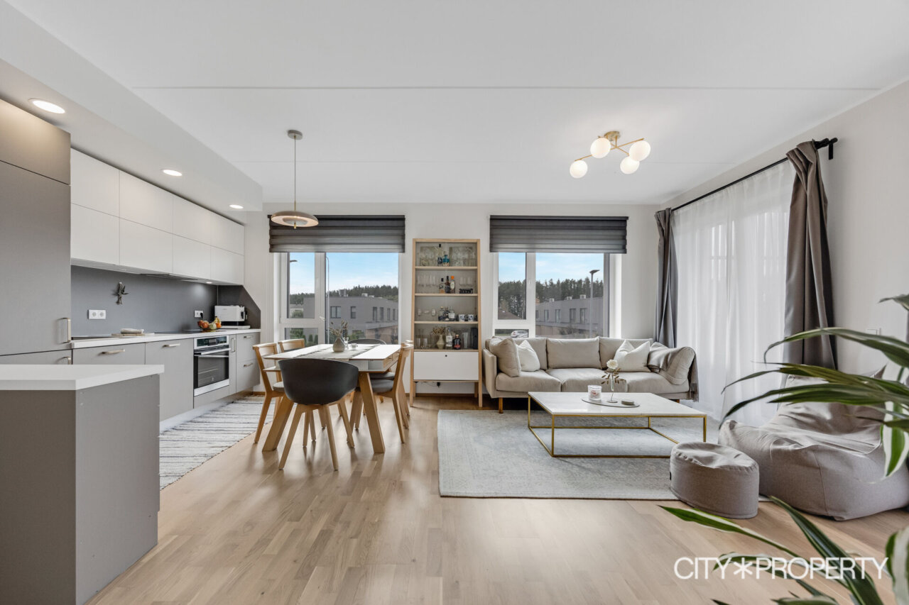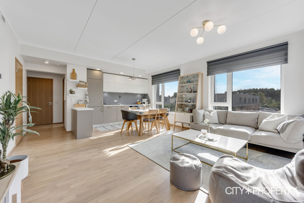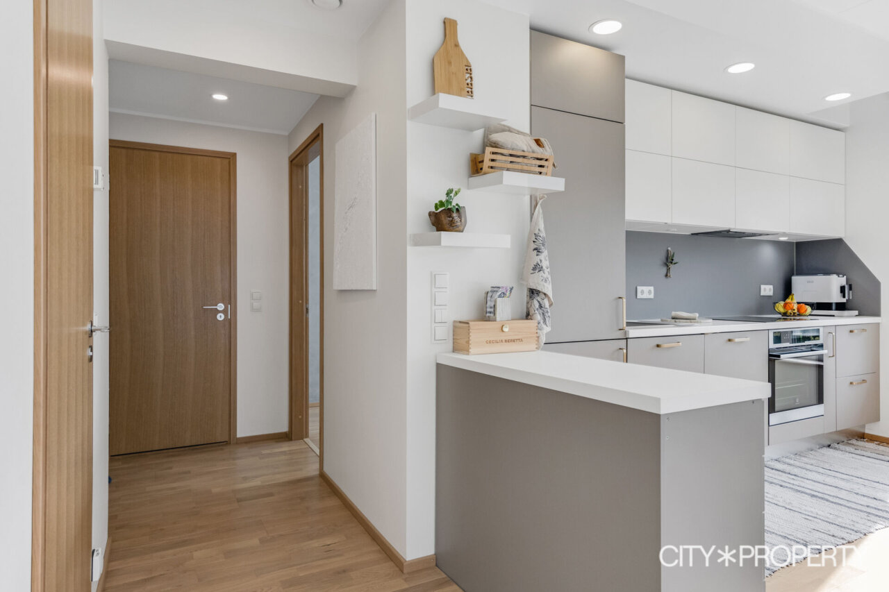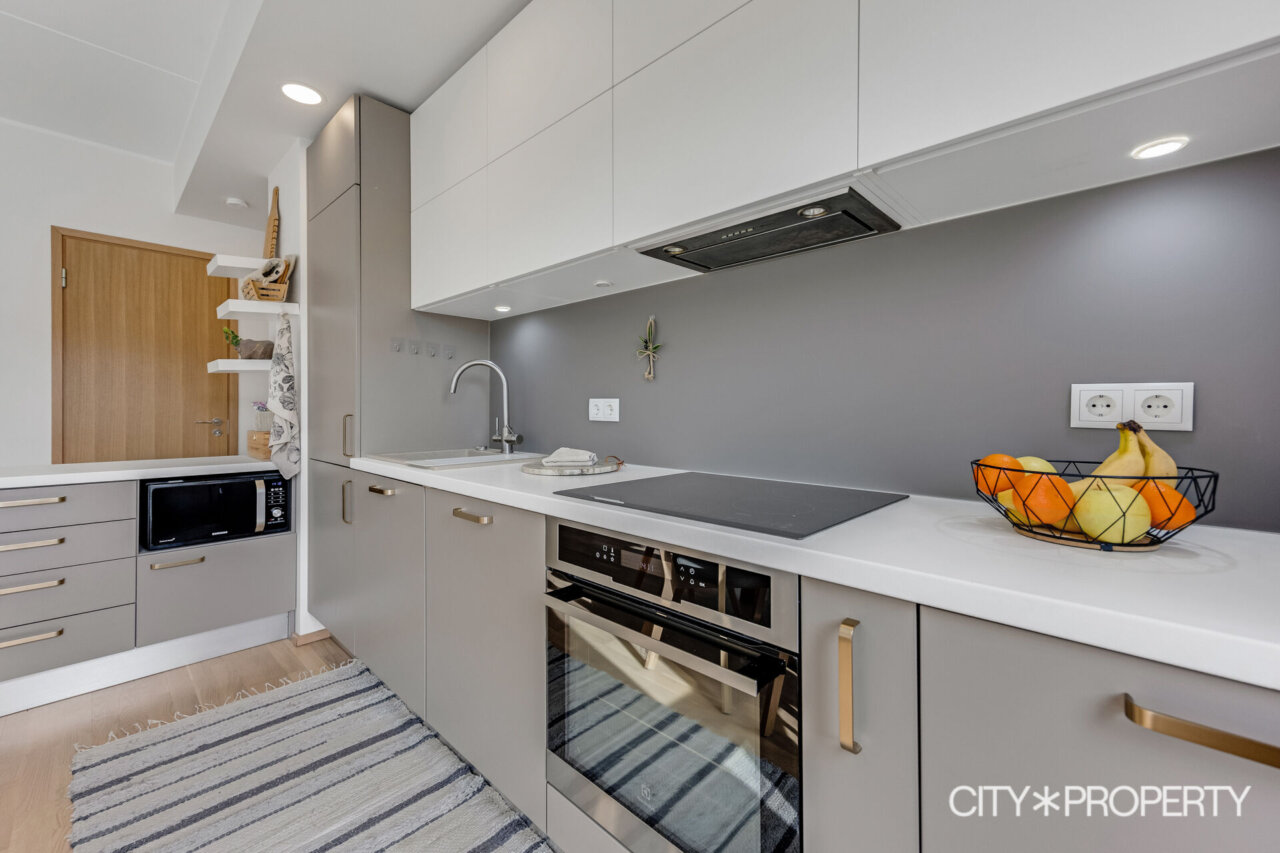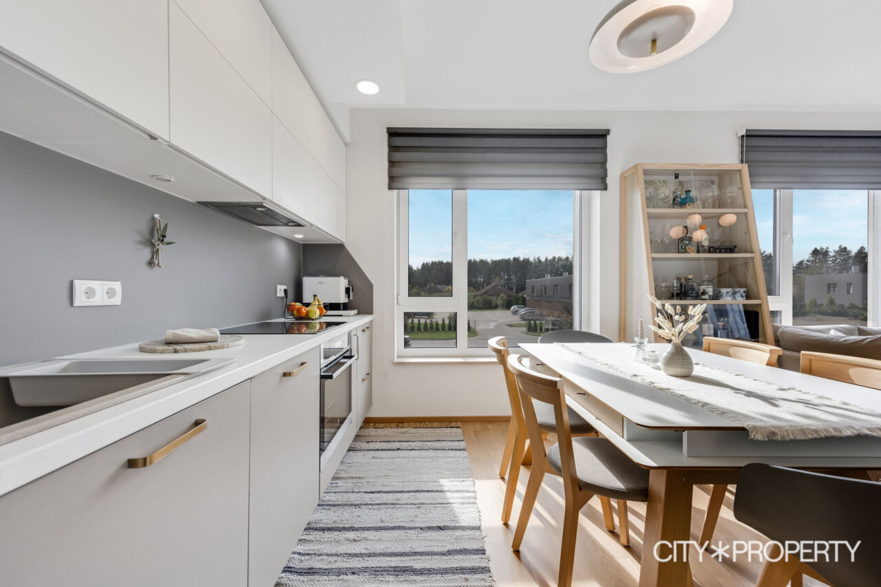 Müügihind sisaldab kvaliteetset köögimööblit koos integreeritud tehnikaga (külmik, õhupuhastaja, suur nõudepesumasin, ahi ning induktsioonpliit) ning eritellimusel valmistatud garderoobikappe esikus ja suuremas magamistoas. Ülejäänud mööbli võimalus.