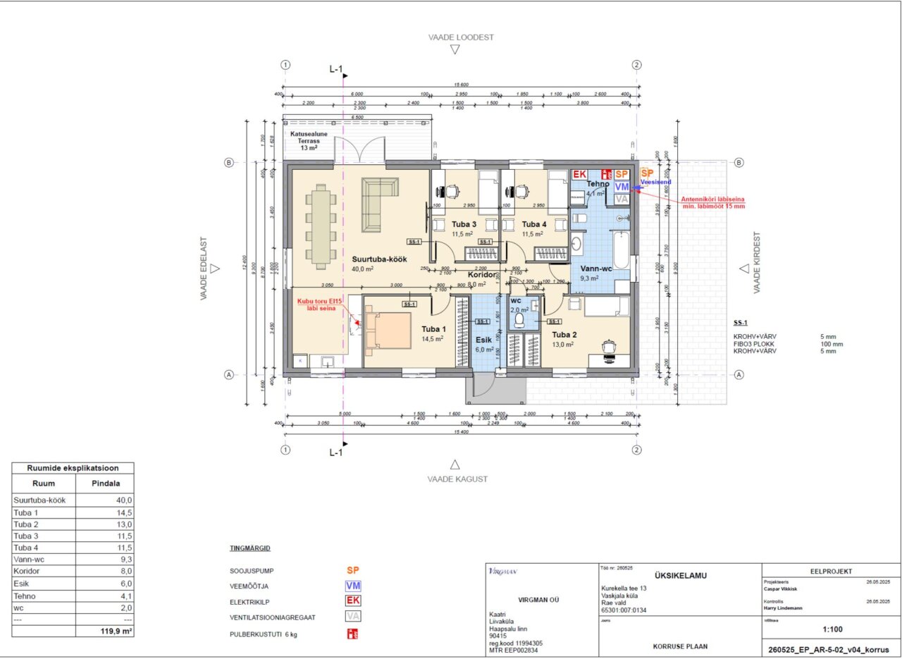 Vaskjala külas on müügile tulnud 5-toaline A-energiaklassi kivimaja. Maja saab valmis orienteeruvalt 2026. aasta veebruaris.