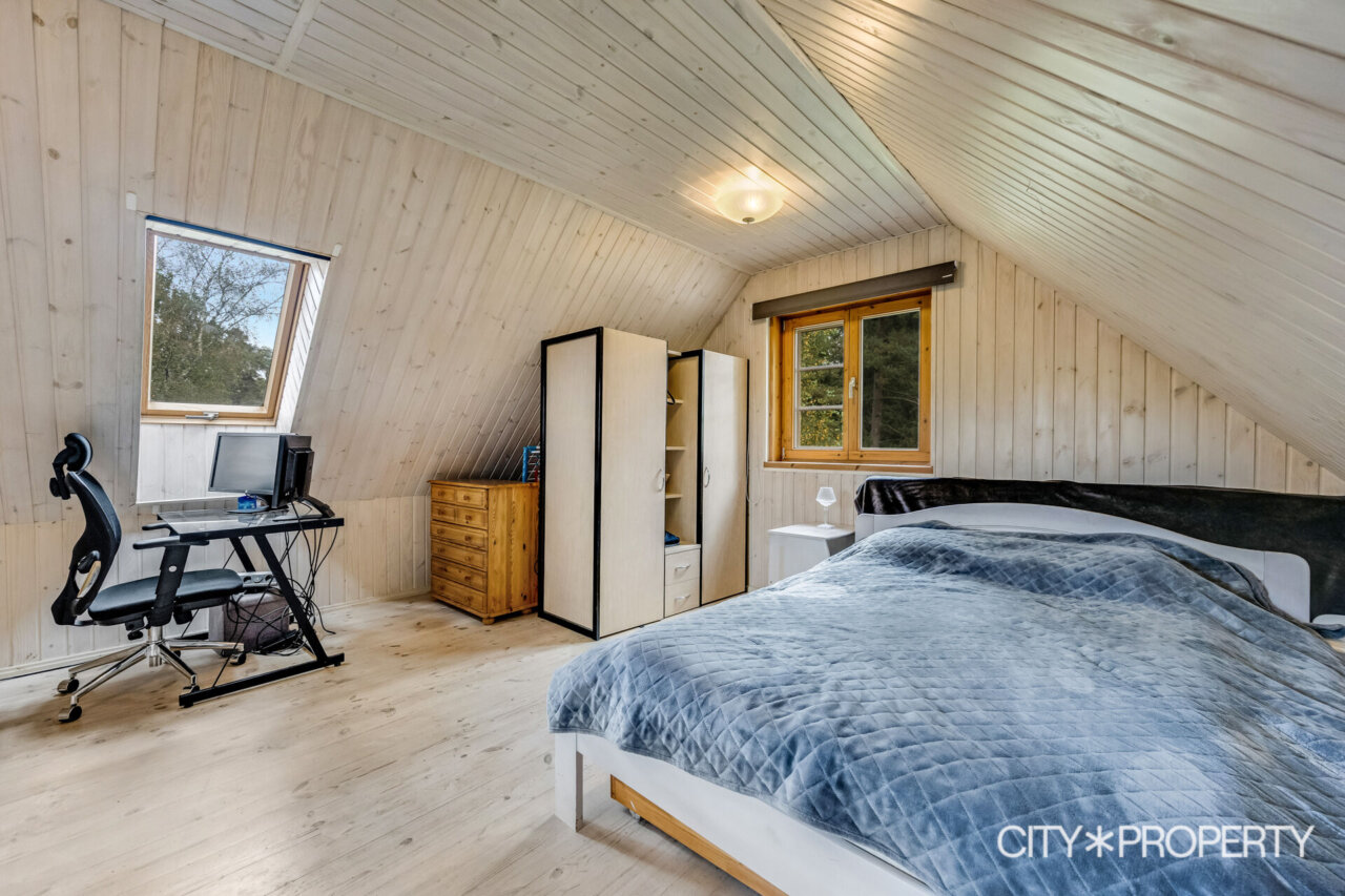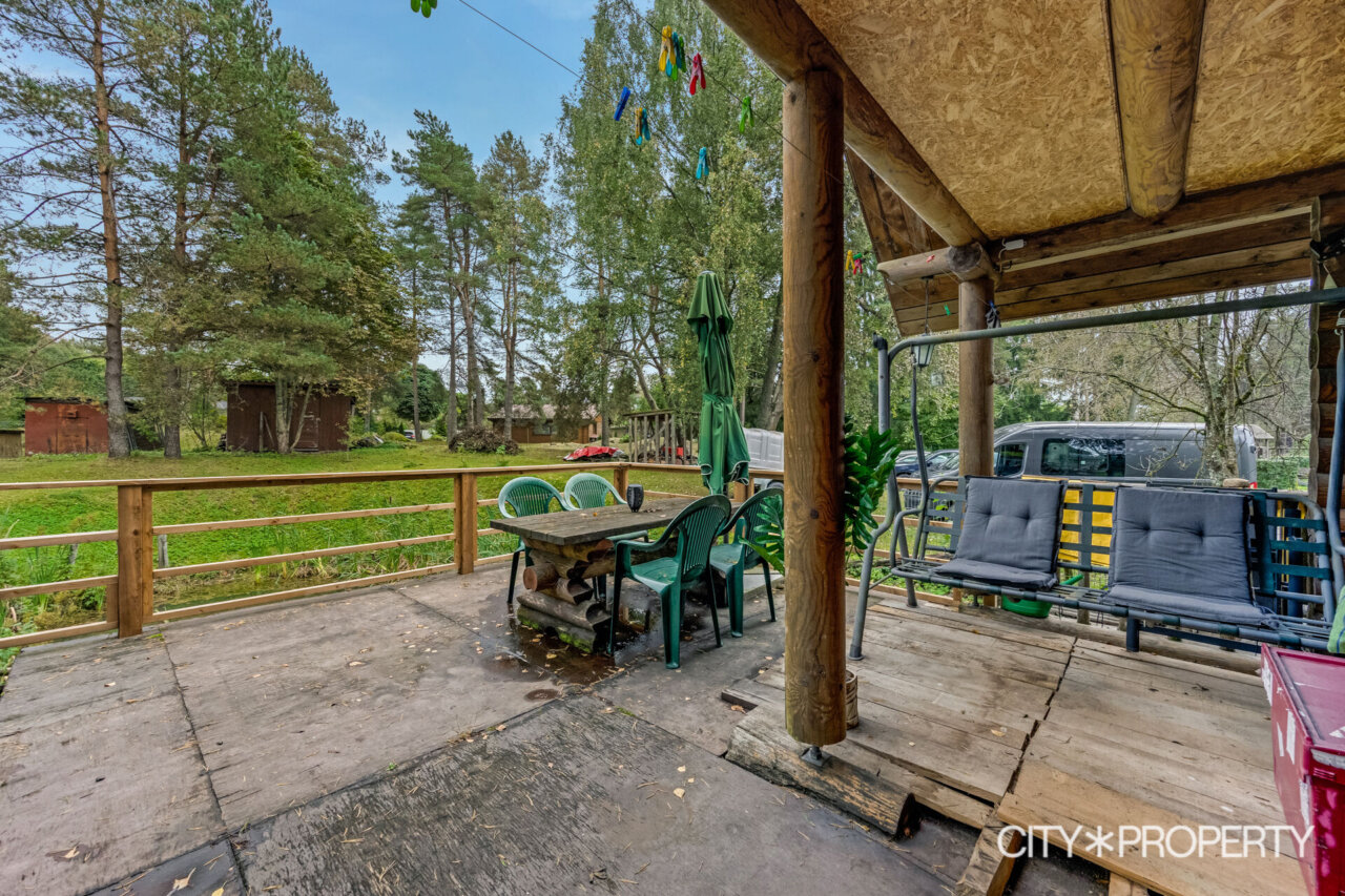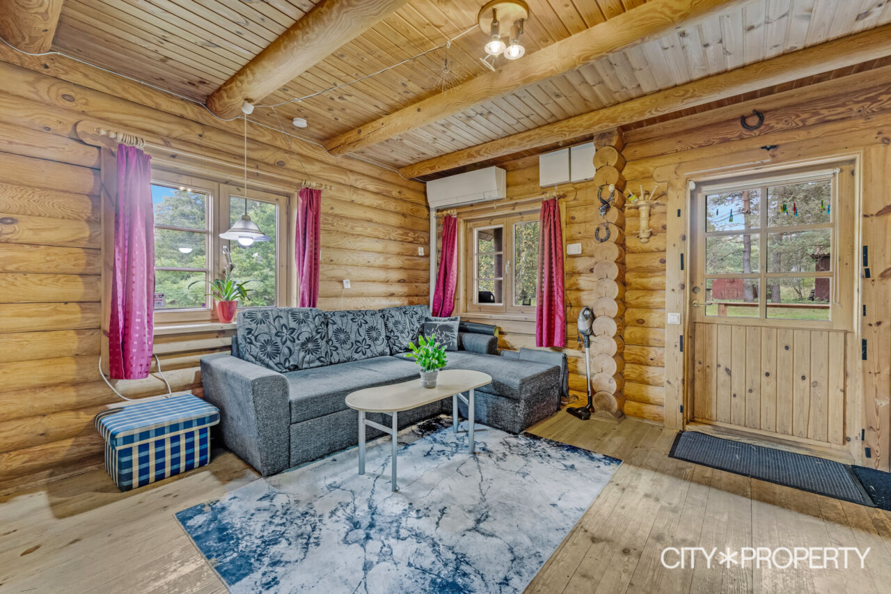 Müüa looduskaunis ja privaatne kinnistu koos palkmajaga. Kahekorruseline saunamaja (elamispind 44,3 m²) on heas seisukorras ning võimaldab aastaringset elamist. Hoones on toimiv saun, terrass, elutuba, köök, magamistuba ja panipaigad. Krunt on kõrghaljastusega ning sellel asub ka väike tiik, mille soovi korral võib ära täita. Lisaks pakub kinnistu võimalust ehitada juurde suurem elumaja. Olemasolev hoone annab elamise võimaluse ehituse ajaks. Uue hoone ehitamisega jääb olemasolev saunamaja abihoonena krundile.