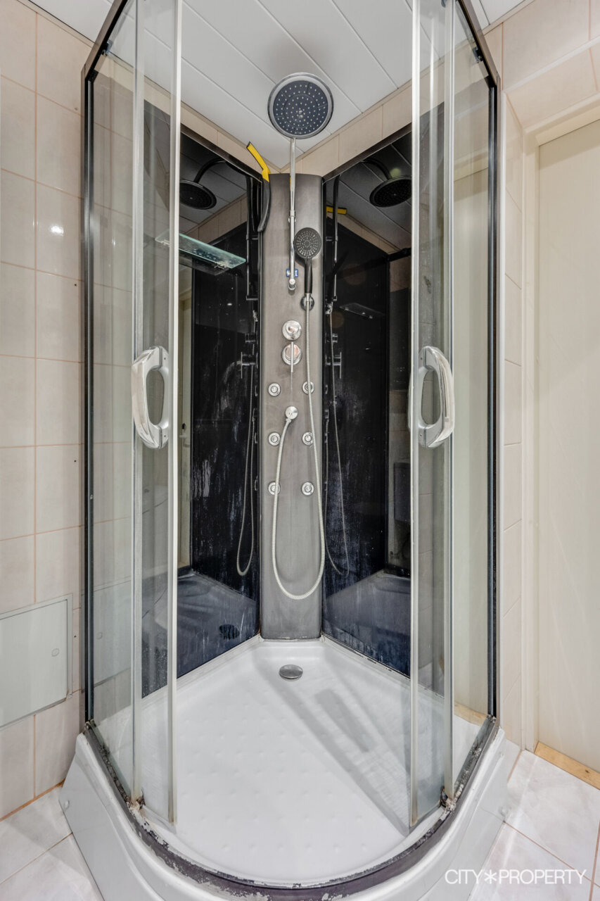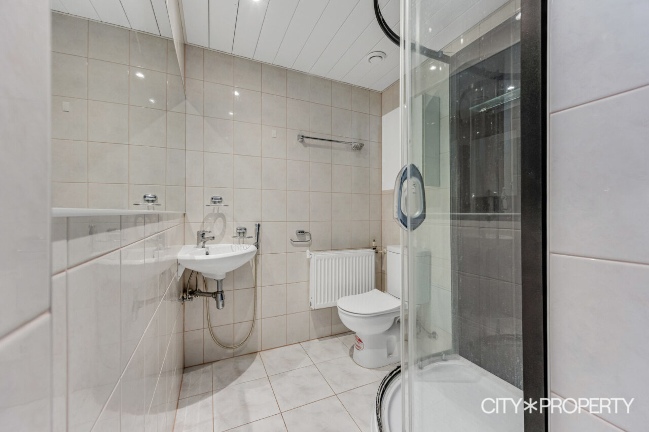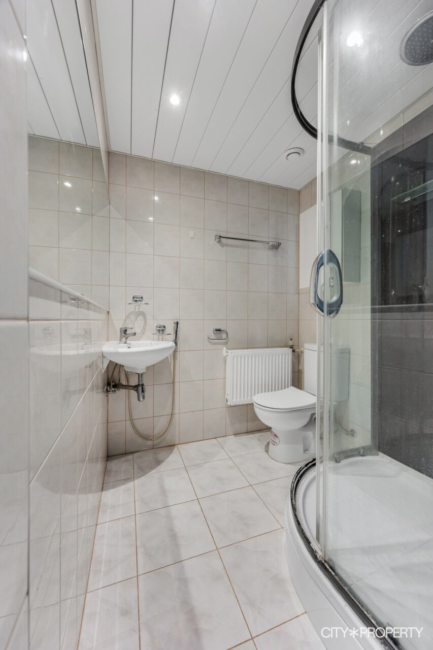 Duširuum ja WC asuvad koos. Ruumis on väljatõmbe ventiilatsioon ja elektriline põrandaküte.