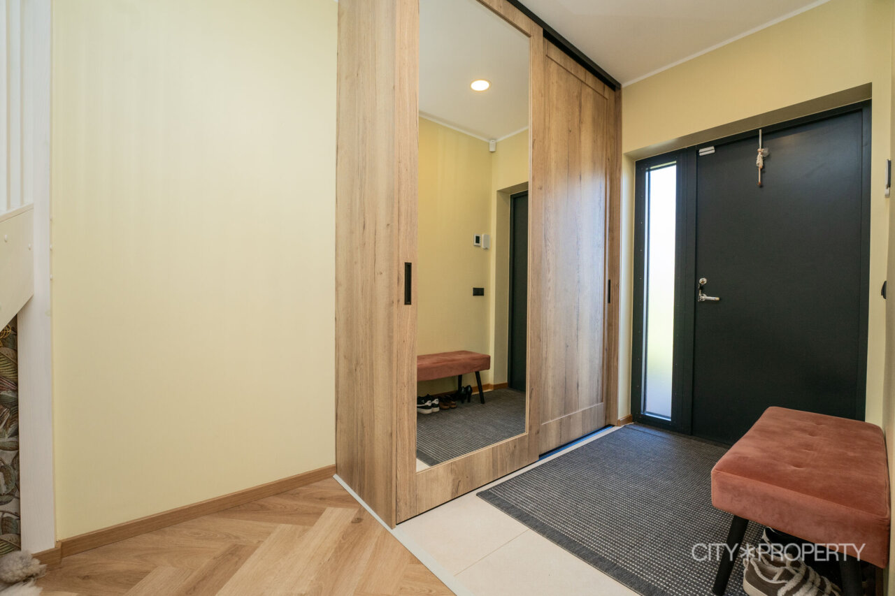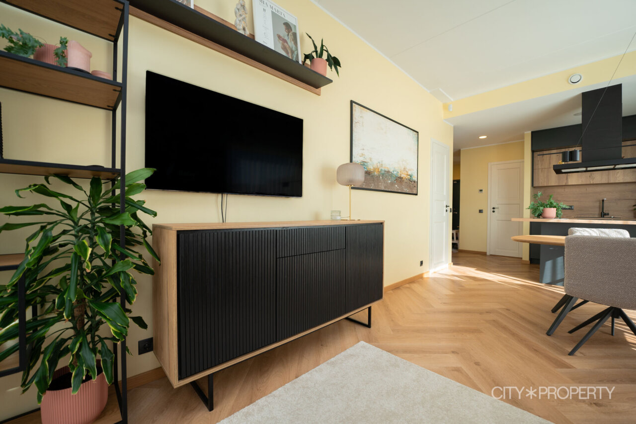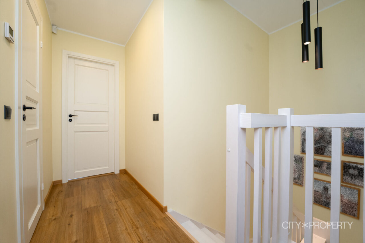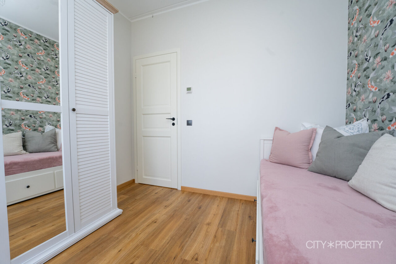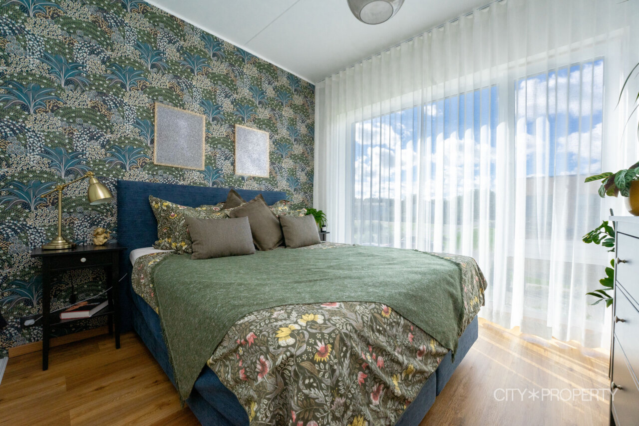 Kodu on läbimõeldult ja isikupäraselt sisustatud. Maast laeni aknad lasevad tuppa rohkelt loomulikku valgust, muutes ruumid helgeks ja avaraks. Eluruumide põrandatel on LVT-parkett, esiku põrand on plaaditud. Korterile lisavad karakterit kõrged laed. 3-kordse klaaspaketiga aknad tagavad hea soojus- ja helipidavuse. Korteris on valvesüsteemi kaabeldus, ühenduspunkt on lastetoas ja lepingu saab soovi korral uuele omanikule üle anda.
