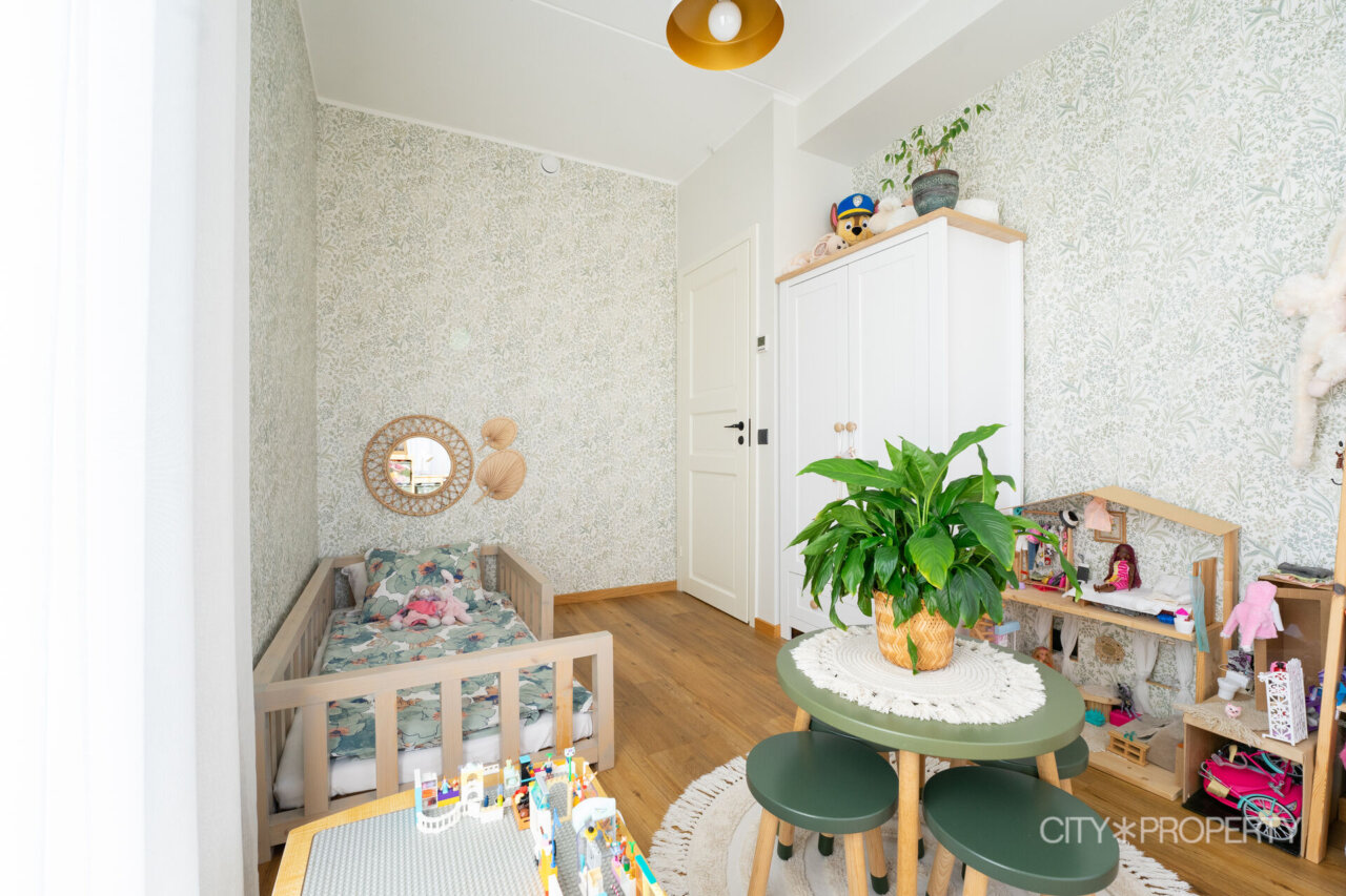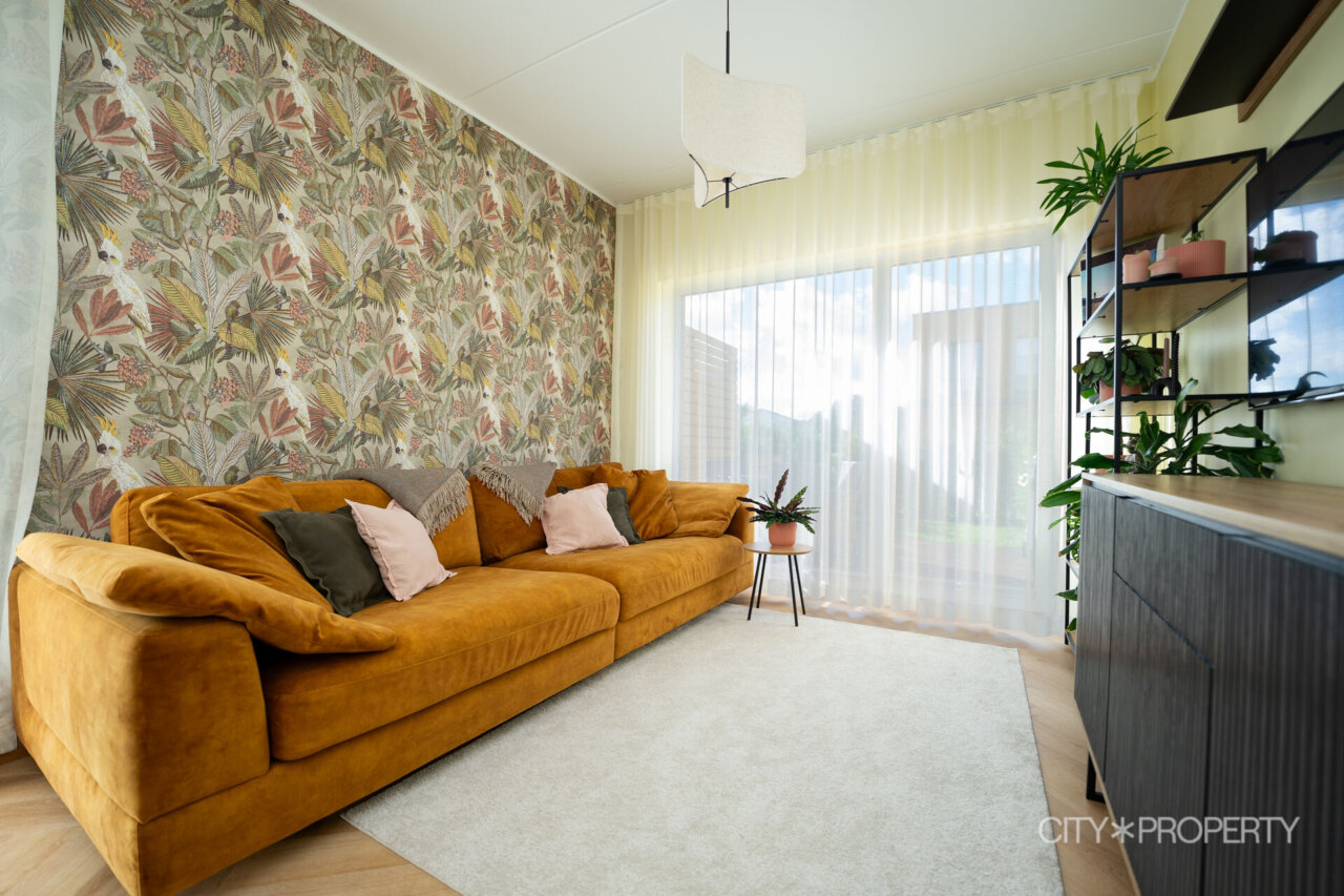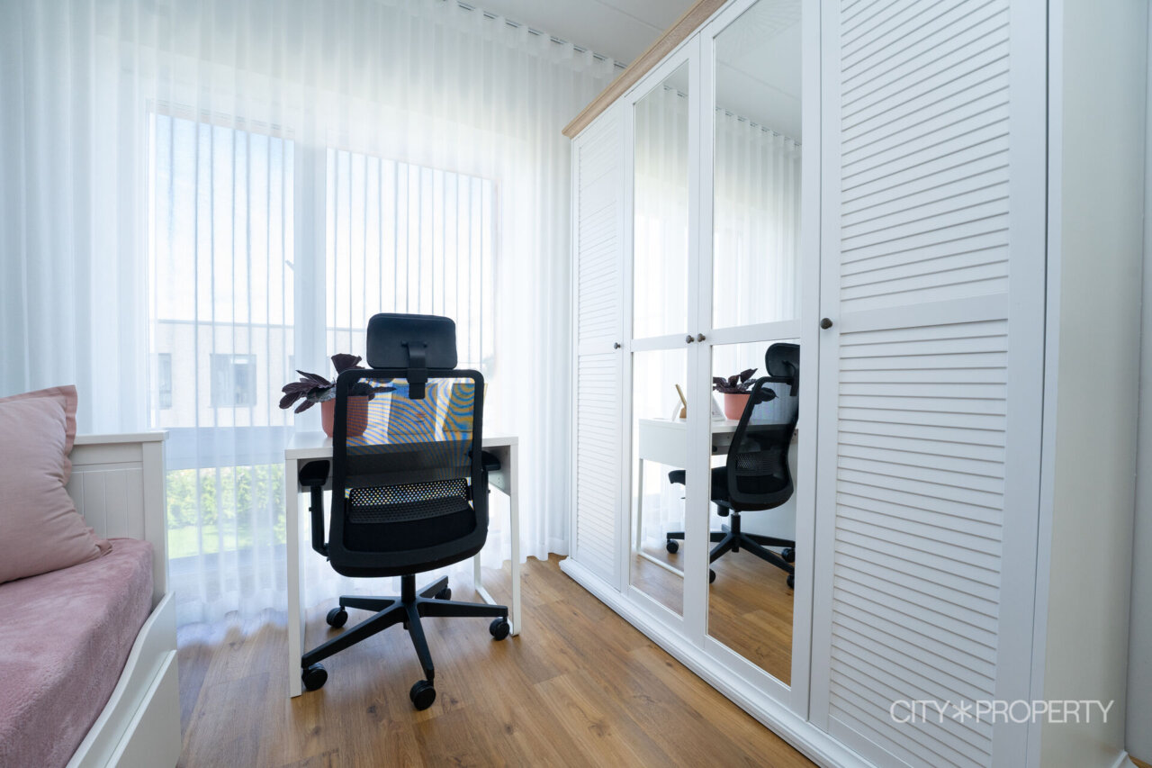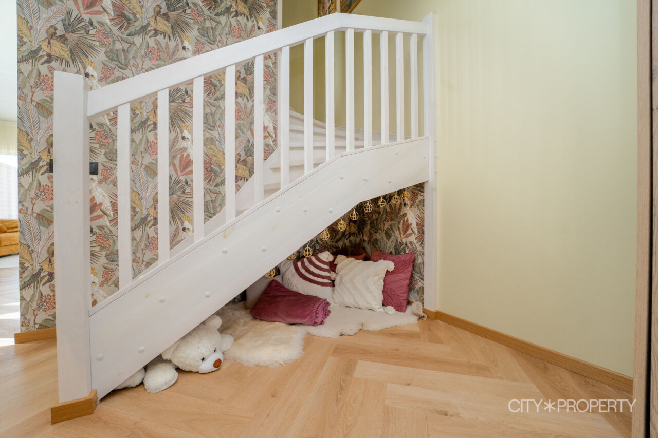 Kodu on läbimõeldult ja isikupäraselt sisustatud. Maast laeni aknad lasevad tuppa rohkelt loomulikku valgust, muutes ruumid helgeks ja avaraks. Eluruumide põrandatel on LVT-parkett, esiku põrand on plaaditud. Korterile lisavad karakterit kõrged laed. 3-kordse klaaspaketiga aknad tagavad hea soojus- ja helipidavuse. Korteris on valvesüsteemi kaabeldus, ühenduspunkt on lastetoas ja lepingu saab soovi korral uuele omanikule üle anda.