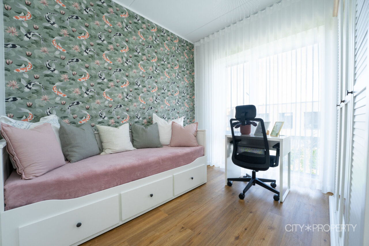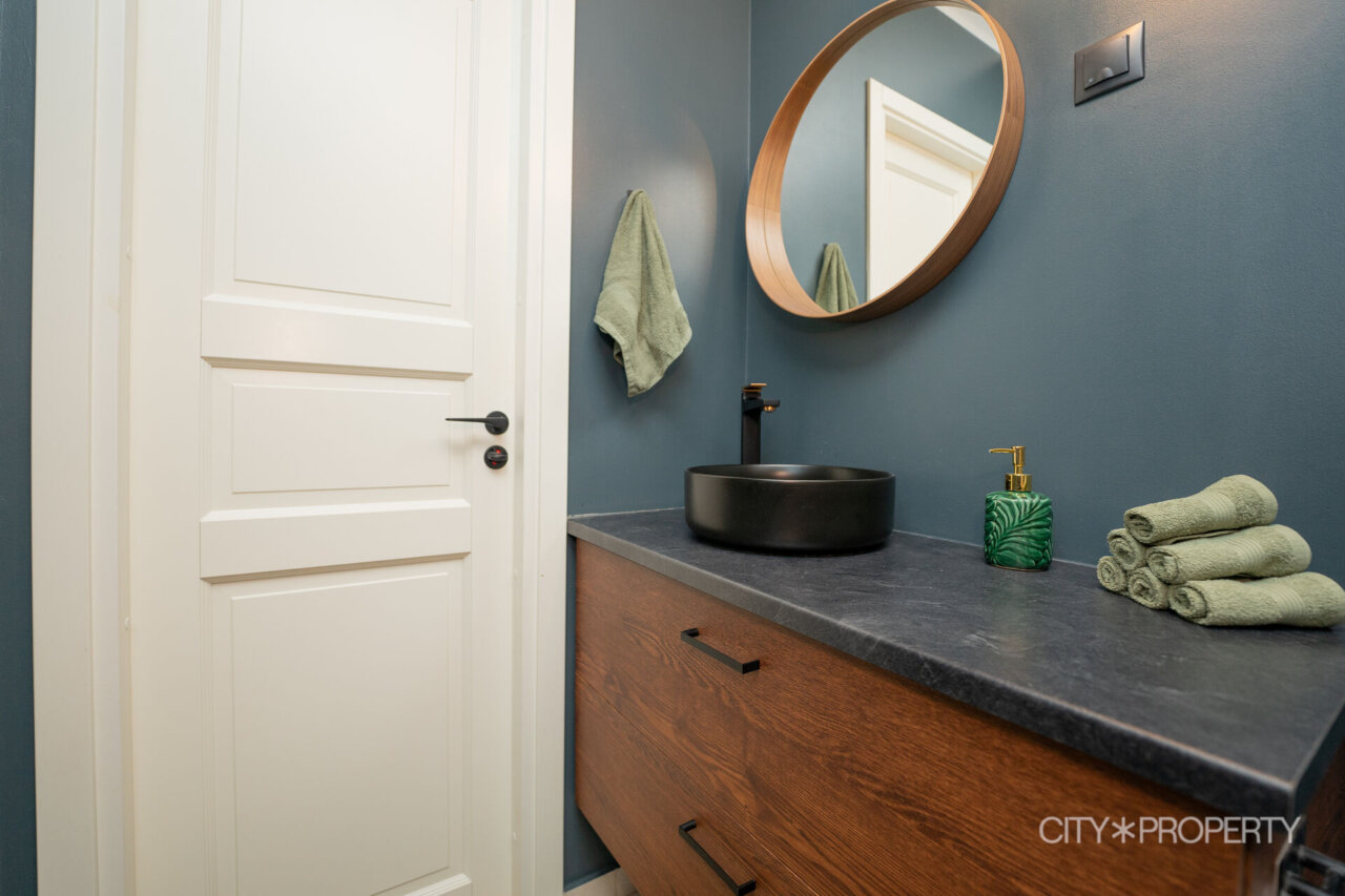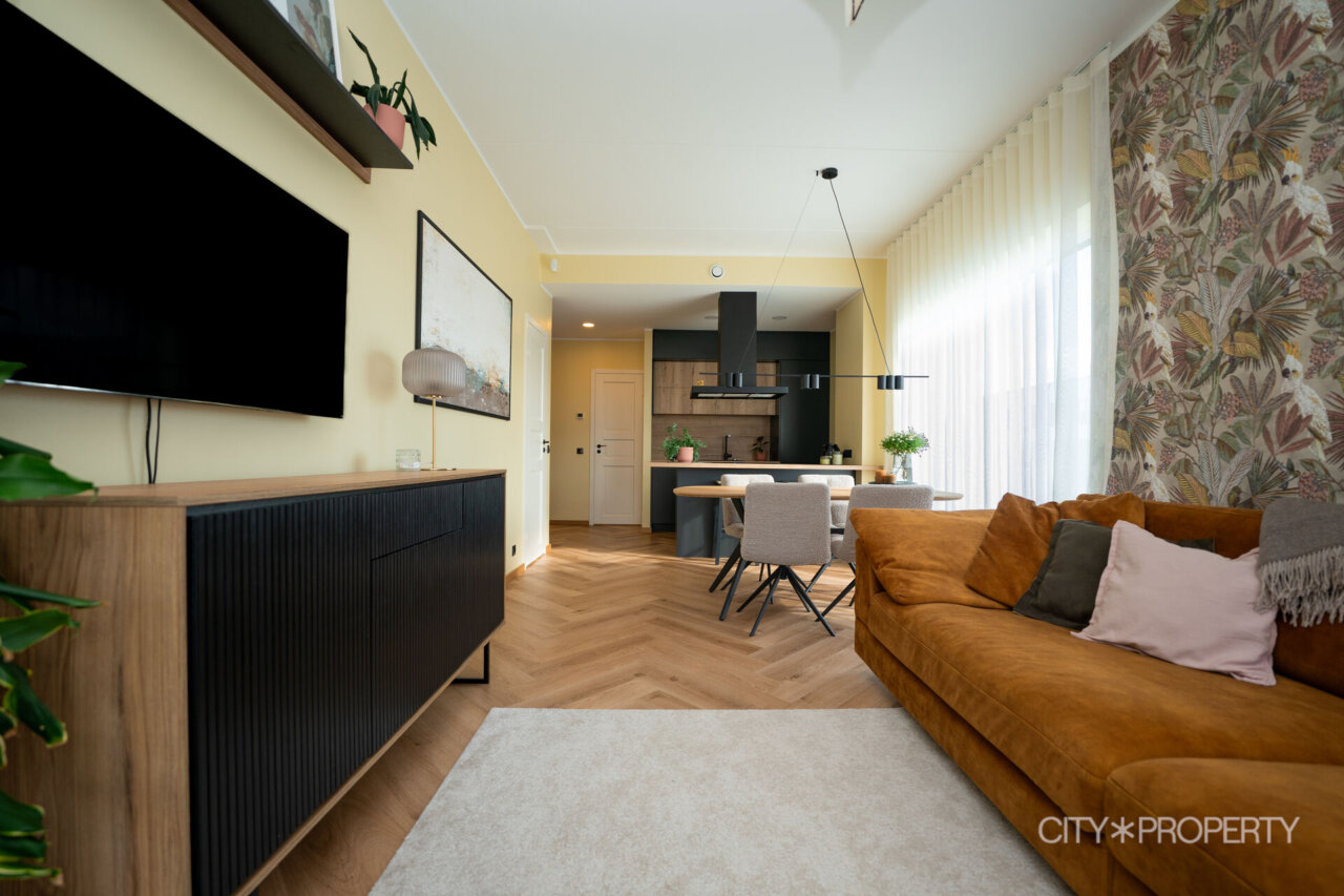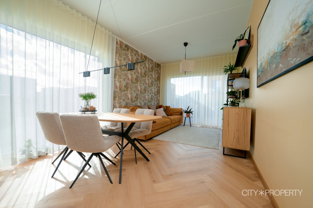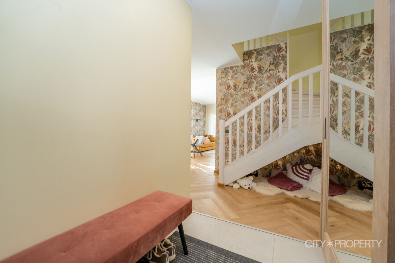Kodu on läbimõeldult ja isikupäraselt sisustatud. Maast laeni aknad lasevad tuppa rohkelt loomulikku valgust, muutes ruumid helgeks ja avaraks. Eluruumide põrandatel on LVT-parkett, esiku põrand on plaaditud. Korterile lisavad karakterit kõrged laed. 3-kordse klaaspaketiga aknad tagavad hea soojus- ja helipidavuse. Korteris on valvesüsteemi kaabeldus, ühenduspunkt on lastetoas ja lepingu saab soovi korral uuele omanikule üle anda.