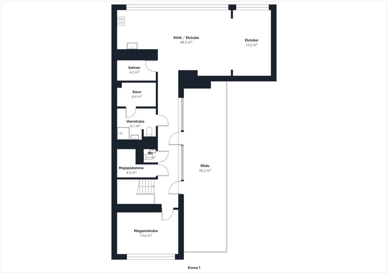 Selle kodu tõeline pärl on ruumikas terrass, kust avaneb unustamatu vaade Maarjamäele ja Pirita rohelusele. See on koht, kus hommikukohv maitseb paremini kui kohvikus ja õhtud saavad luksusliku lõpu. Ideaalne koht nii vaikuse nautimiseks kui ka meeleoluka seltskonnaga aja veetmiseks.