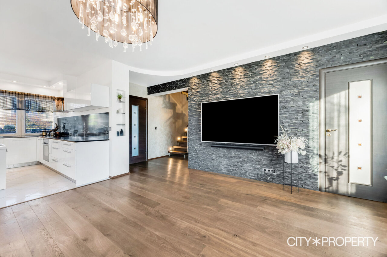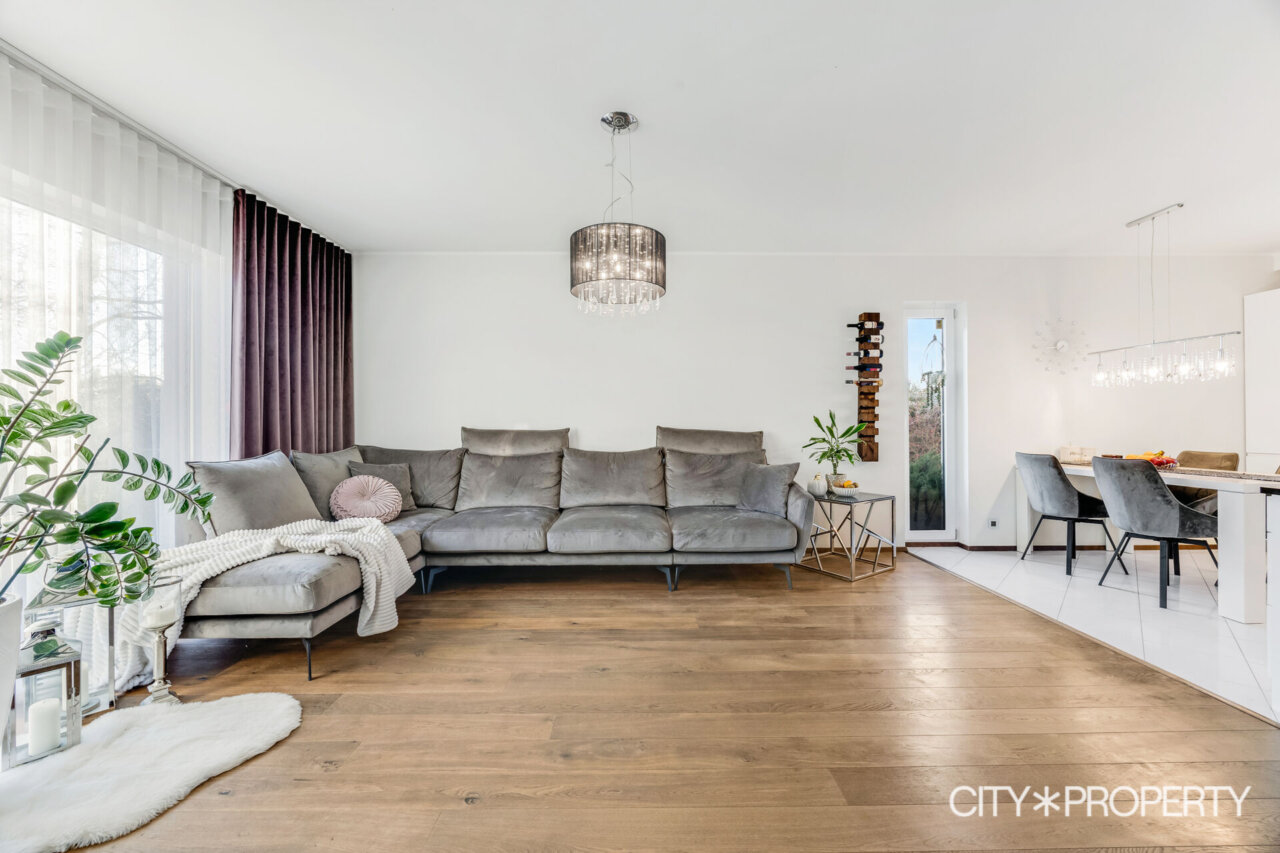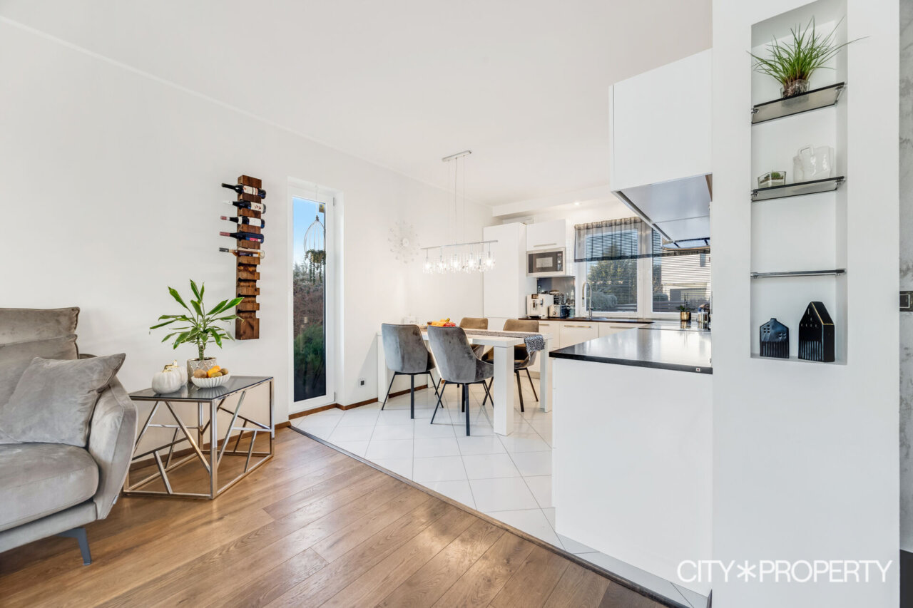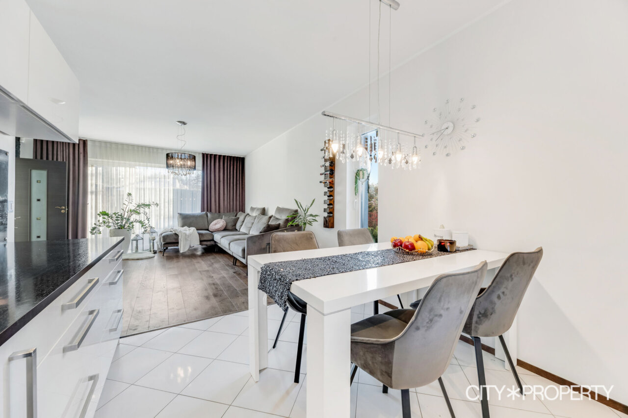 Kodu esimesel korrusel asub avar köök/elutuba pääsuga päikeselisele terrassile ning kaunilt haljastatud aeda. Kööki sisustab köögimööbel koos vajaliku tehnikaga (keraamiline elektripliit, elektriahi, disainkubu, nõudepesumasin, mikrolaineahi ja külmkapp).