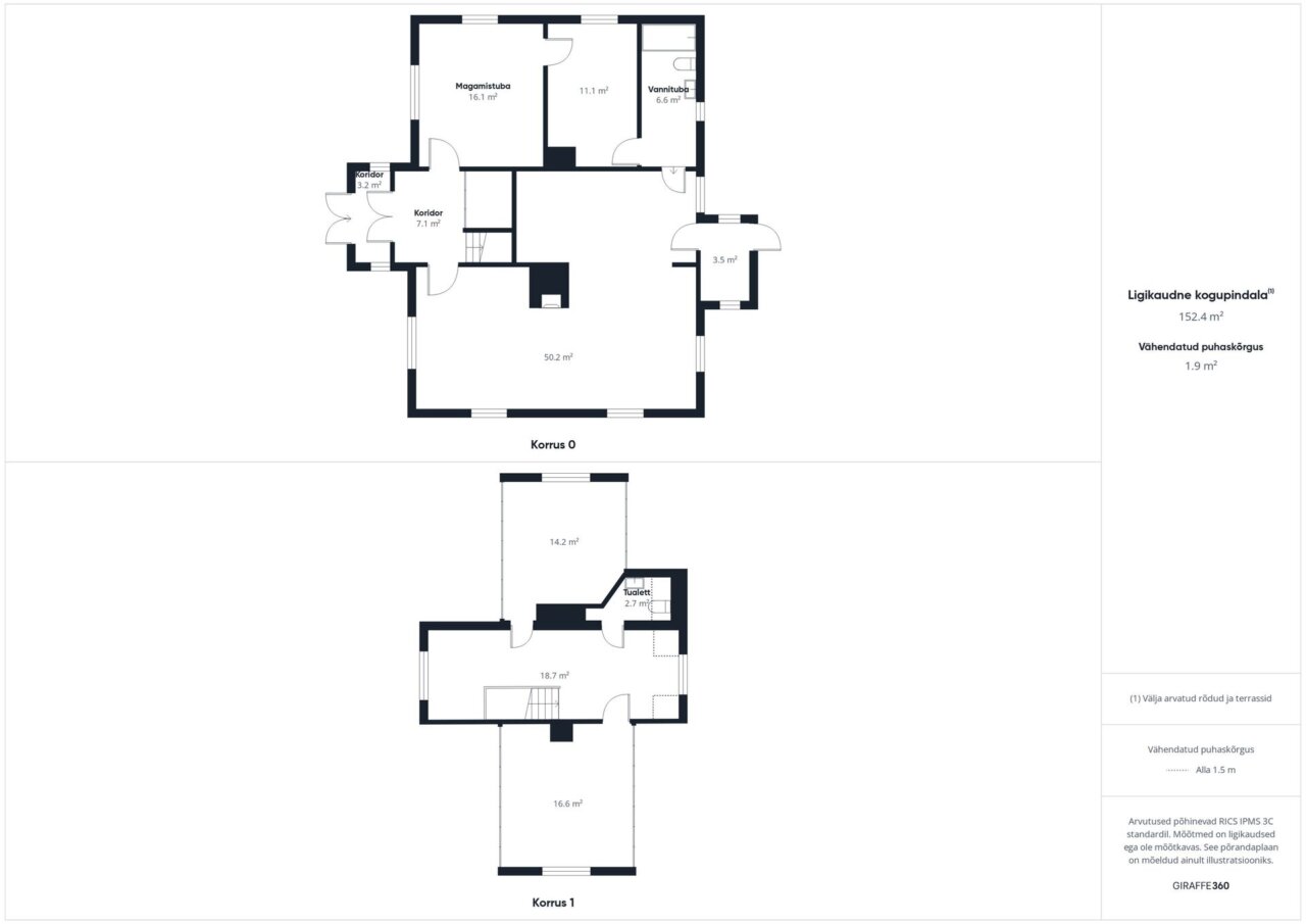 Maja esimesel korrusel on privaatsed, eraldi asetsevad eluruumid, 2 tuba, mis on ühendatud duširuumi/wc-ga, mis on kahelt poolt ligi pääsetav.