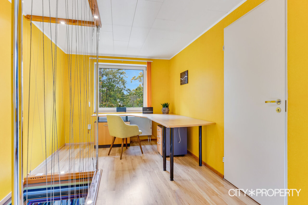 Selle kodu sisekujunduses on valdavalt kasutatud rõõmsaid värvitoone, seinad on osaliselt värvitud ja osaliselt kaetud tapeediga. Põrandaid katab laminaatparkett. Pesuruumi ja wc põrandad ja seinad on plaaditud.