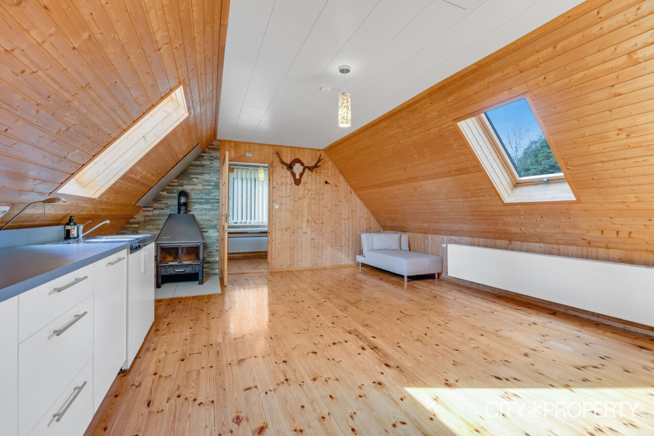 Hoone teisel korrusel asuvad ruumid külaliste majutamiseks, mis sobivad ka näiteks pere suurematele lastele eluruumideks või välja üürimiseks. Siin on kaks tuba, millest suuremas on ka kööginurk ja kamin. Sobivad aastaringseks elamiseks.