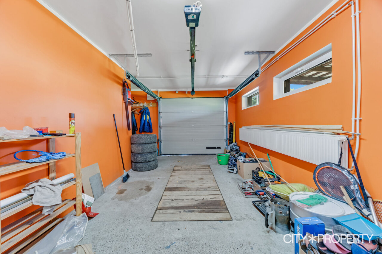 Esimesel korrusel on puuküttega saun, kus saab pere ja sõpradega saunamõnusid nautida. Suur garaaž mahub lisaks autole veel palju muud, näiteks ATV, jalgrattad, mootorratas vms.