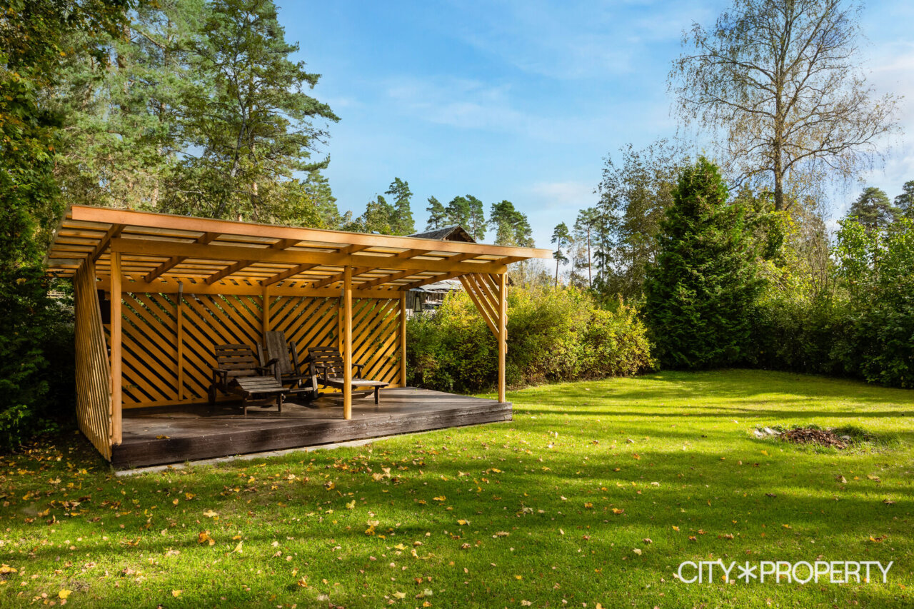 Kinnistul on 2 kordne elumaja koos terrassiga, kõrvalhoone milles asuvad garaaž, saun, toad külalistele, auto varjualune, varjualune puude ja muu hoidmiseks, ning grillinurk ja lõkkease.