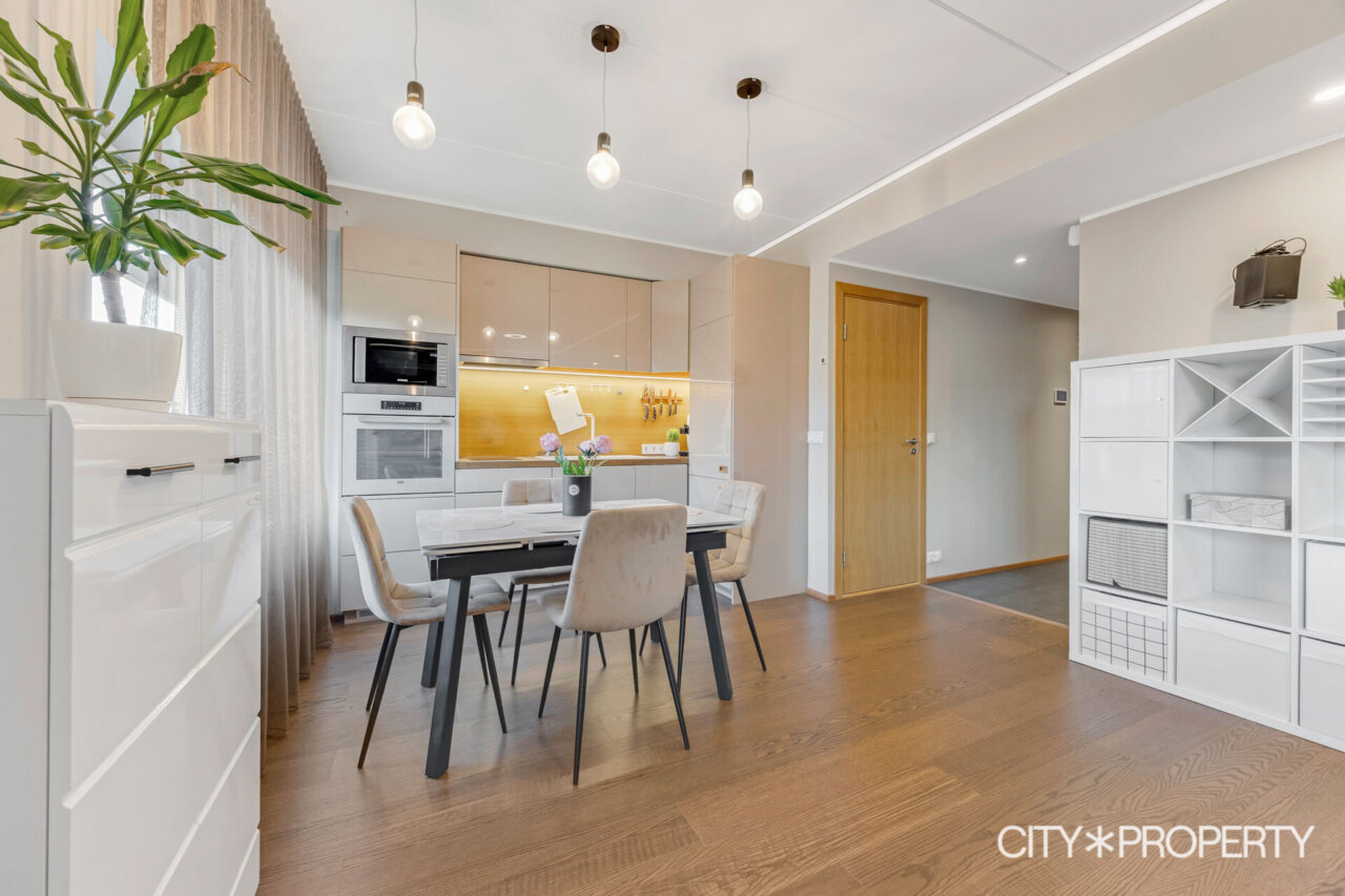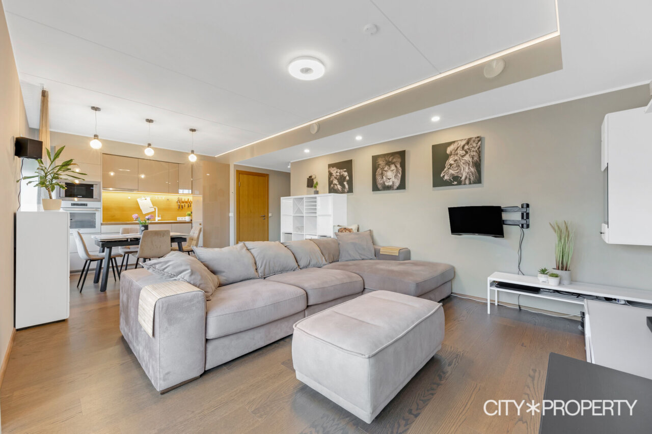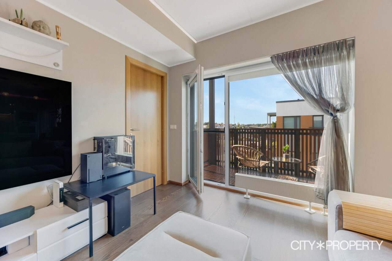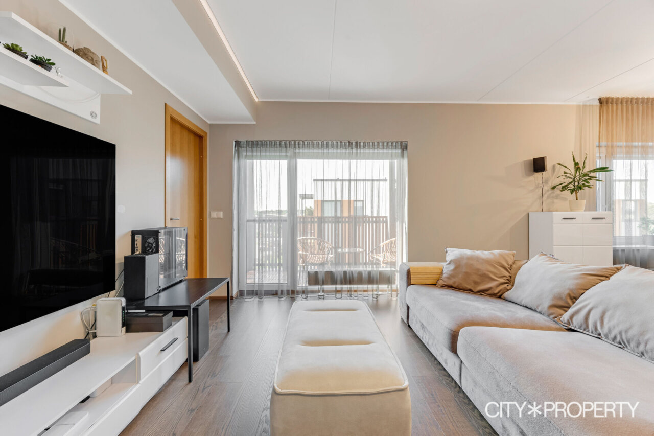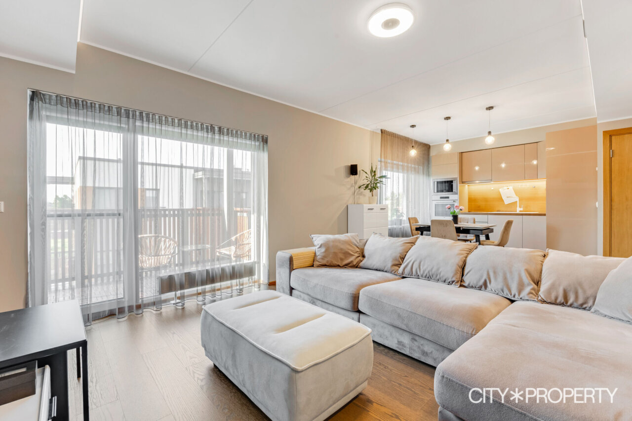 Avar elutuba on sisustatud mugava suure diivani ning muu vajaliku sisustusega. Elutoas on hubasust ja efekti loovad valguslahendused, mida saad oma maitse järgi reguleerida. Aasta soojemal perioodil on selle kodu rõdu mõnusaks elutoa pikenduseks, kus lähedaste või sõpradega olemist nautida.