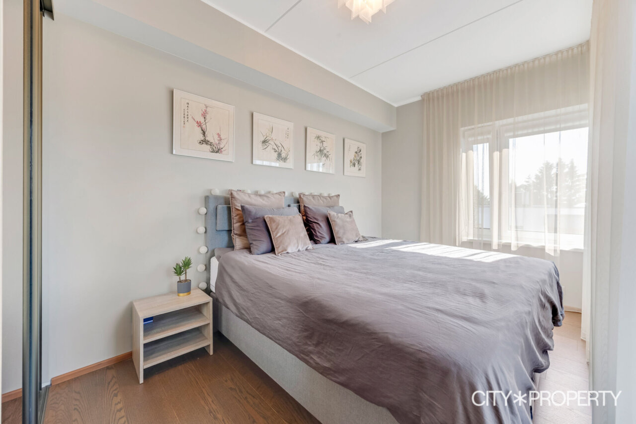 Korteri kõikide akende ees on lisaks kardinatele ka pimendavad rulood, mis hoiab toa pimeda, laseb pikalt ööund nautida, ning vajadusel kaitseb ka kuuma päikese eest.