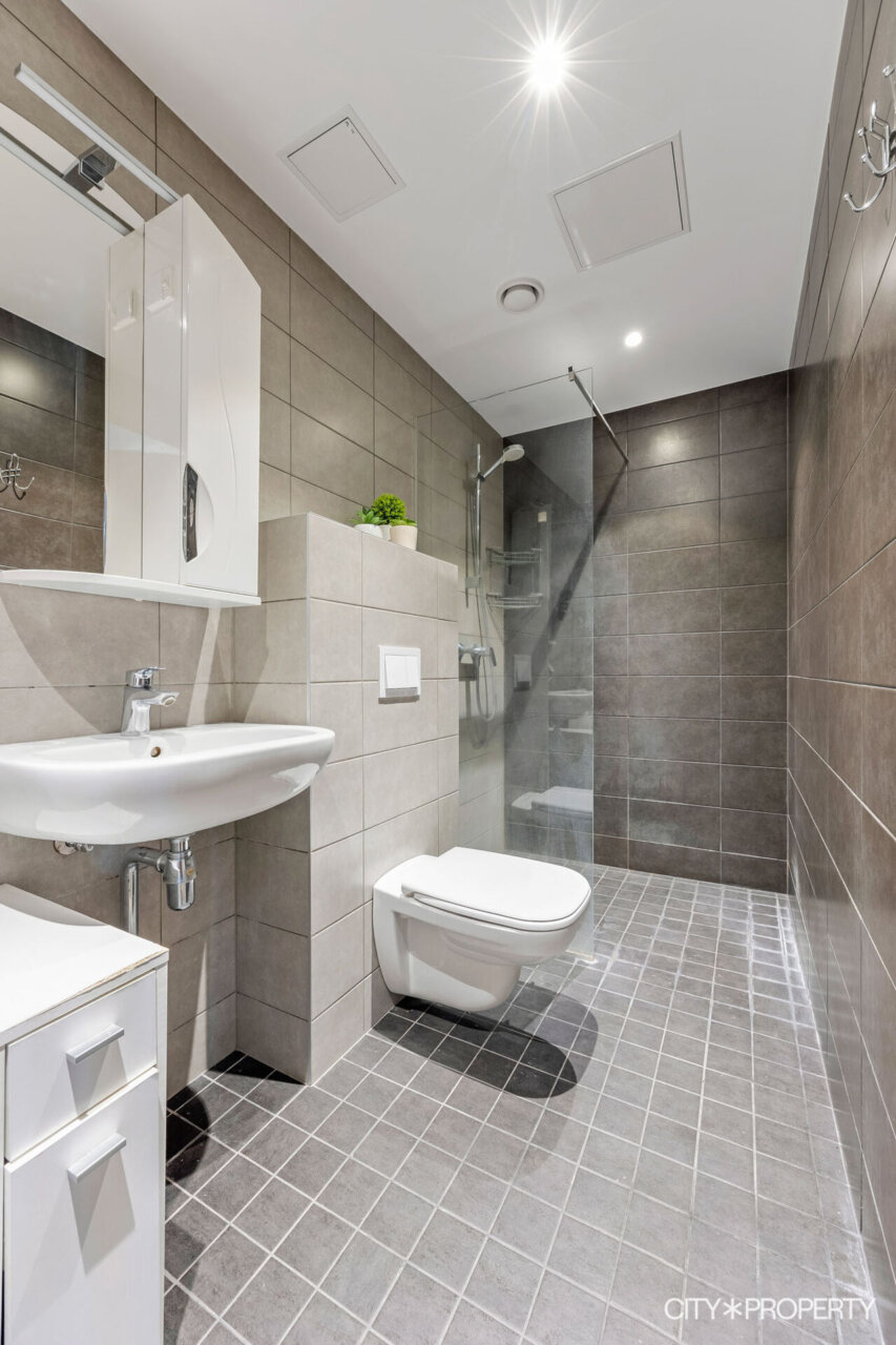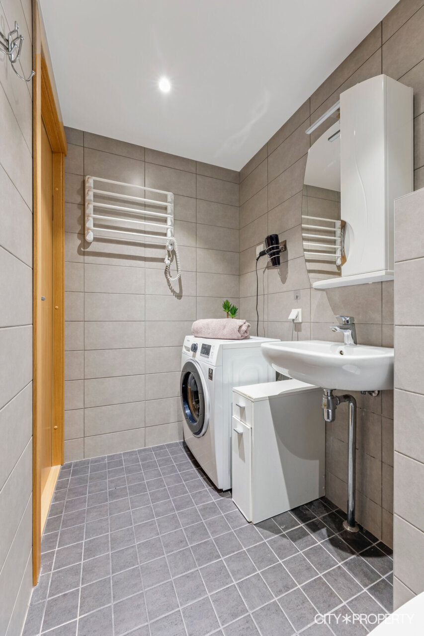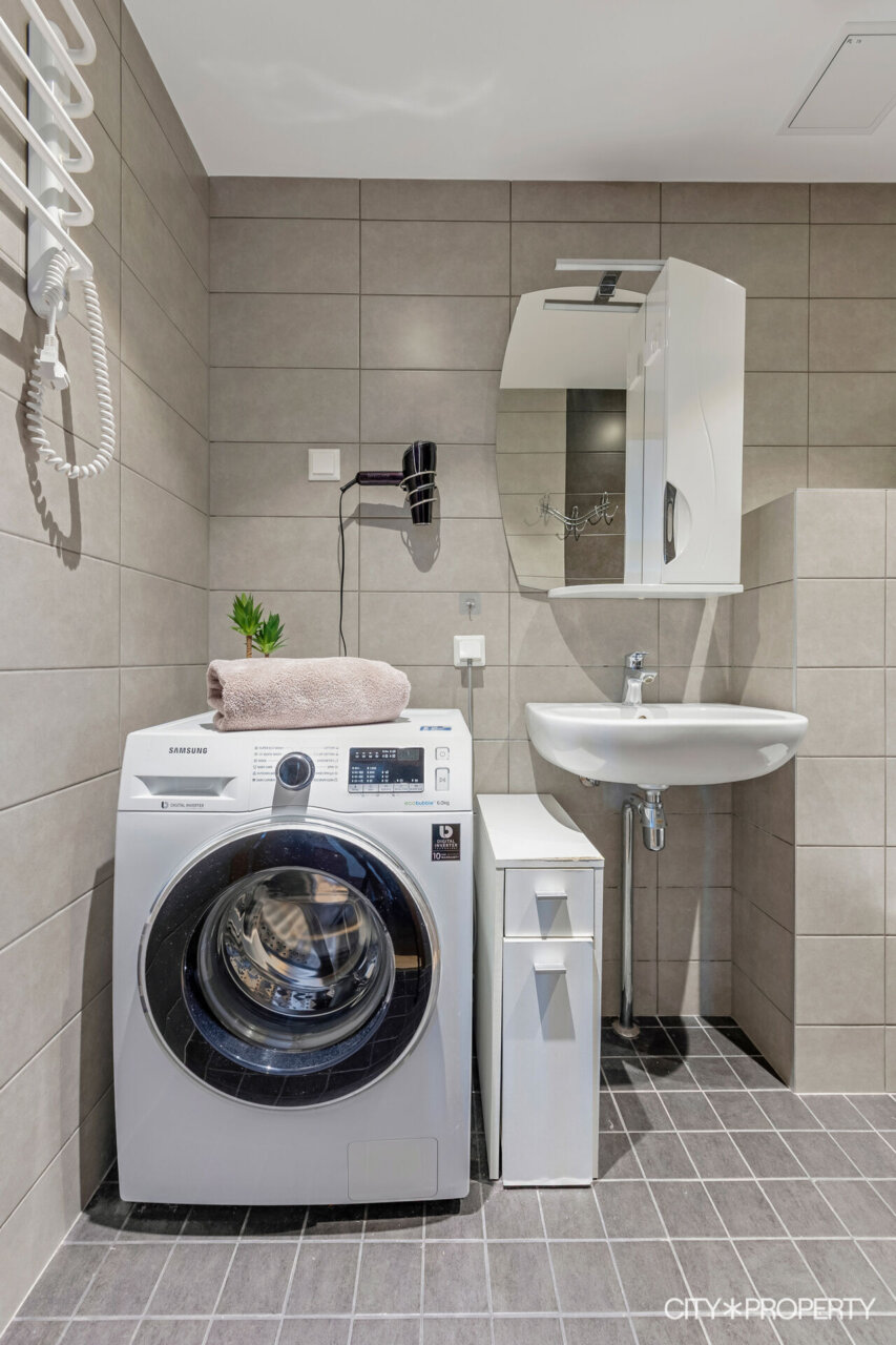 Pesuruumi seinad ja põrand on plaaditud ning olemas on põrandaküte ning sundventilatsioon.