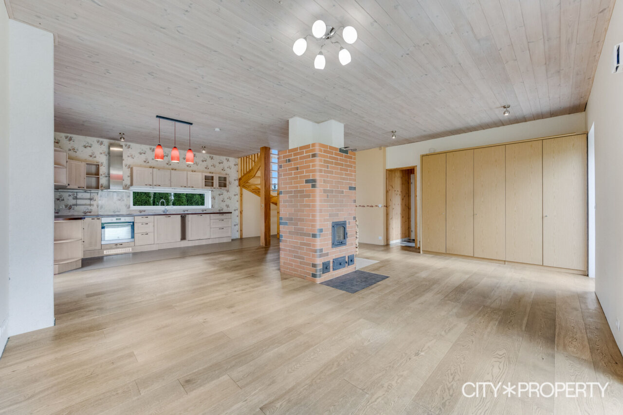 – Avar elutuba avatud köögiga, kus kamin loob hubasust ja soojust.