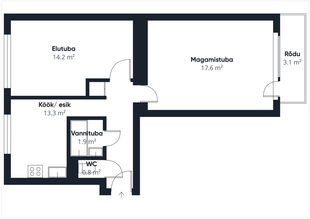Vannituba 1,9 m² ja WC 0,8 m² – eraldi, mis on mugav lahendus