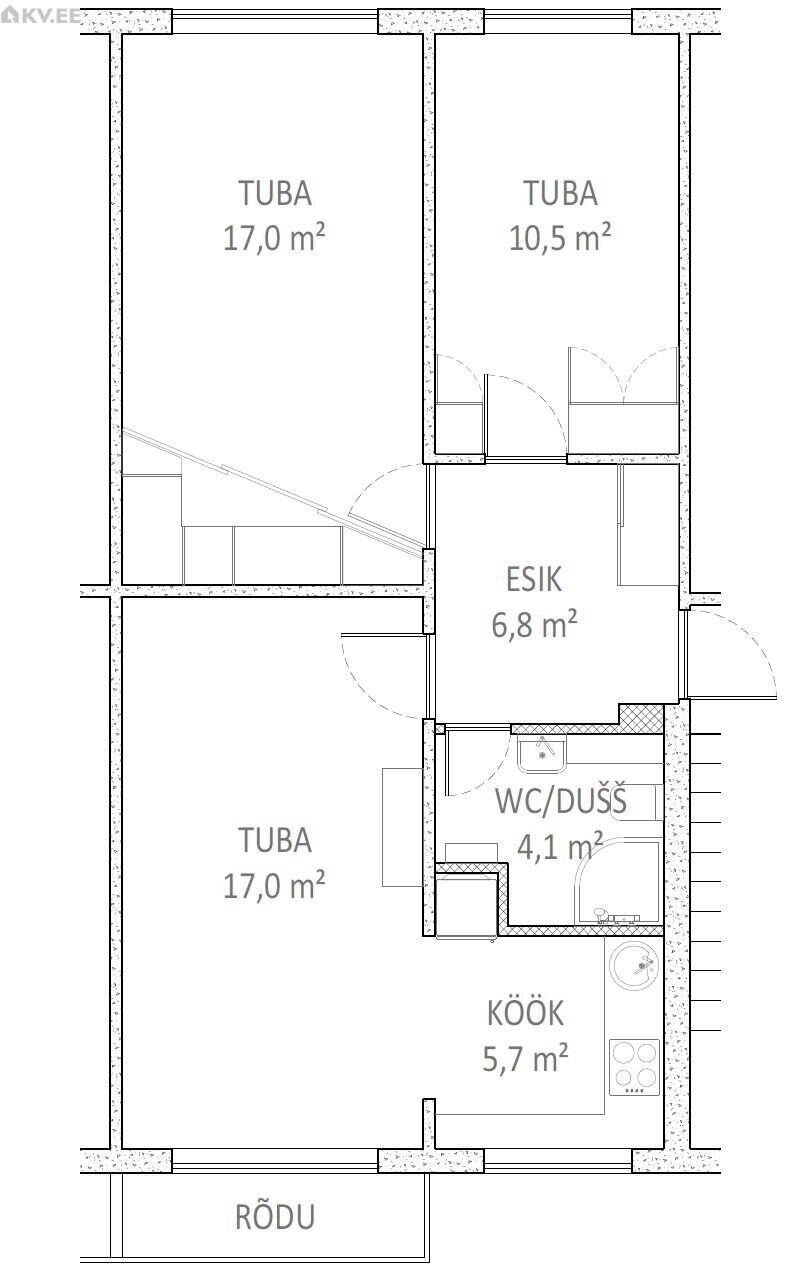 NB! Korteri plaan on ligilähedaste mõõtudega.