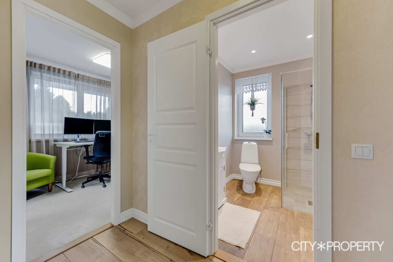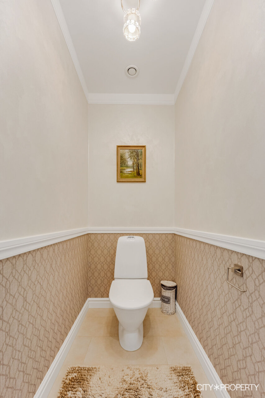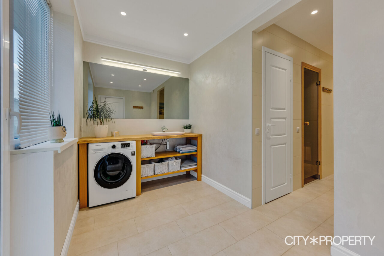 Majas on kaks WC-d ja kaks dušširuumi, samuti avar pesuköök ning saun koos eesruumiga, kust pääseb otse majatagusele terrassile. Katusealuse terrassi kaudu on ligipääs suurde garaaži (registreeritud töötoana) ja panipaika, kus paikneb maja küttesüsteem ning automaatloputusega pissuaar.