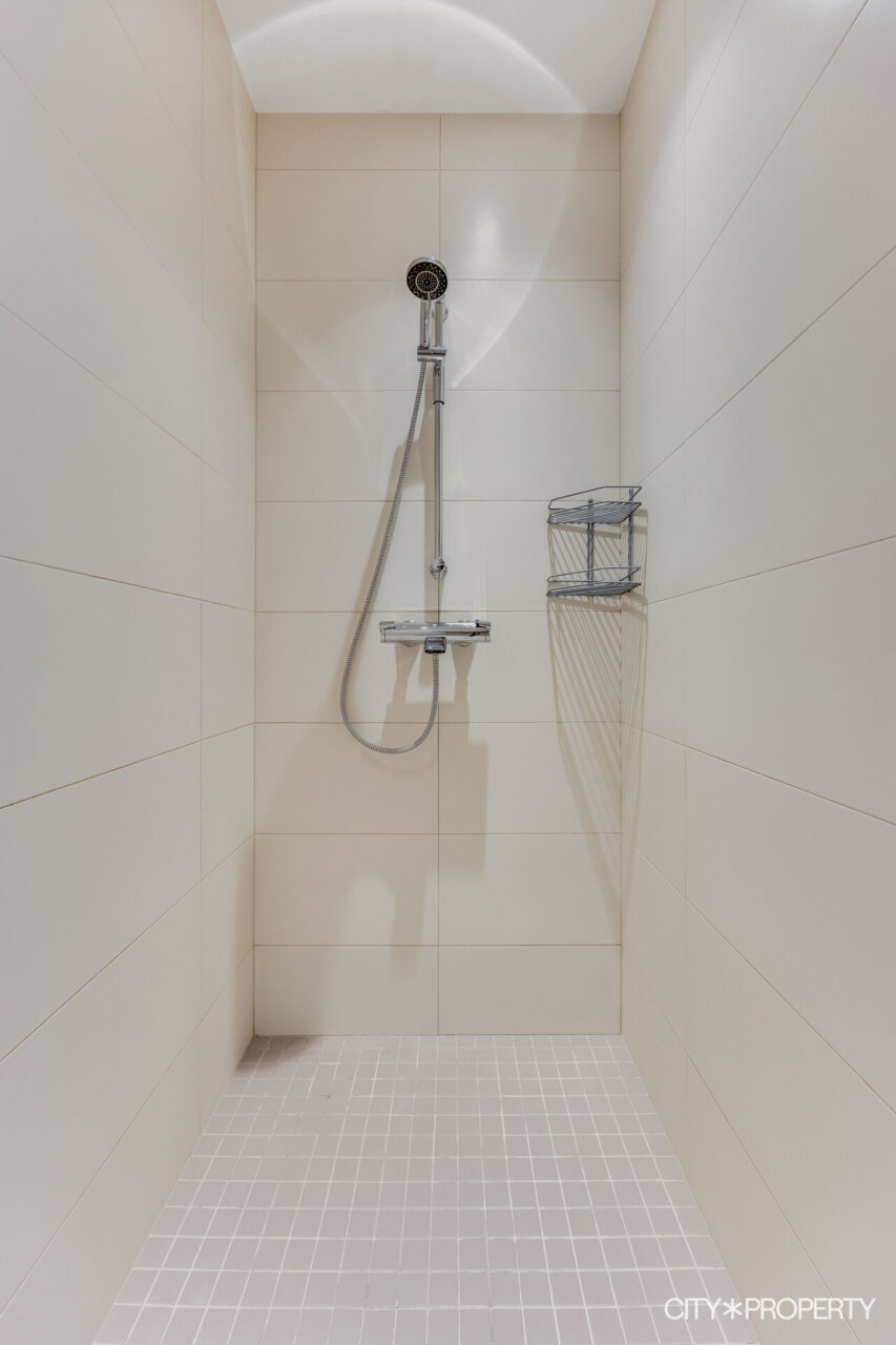 Pesuruumide, esiku ja WC põrandad ning dušširuumi seinad on kaetud keraamilise plaadiga.