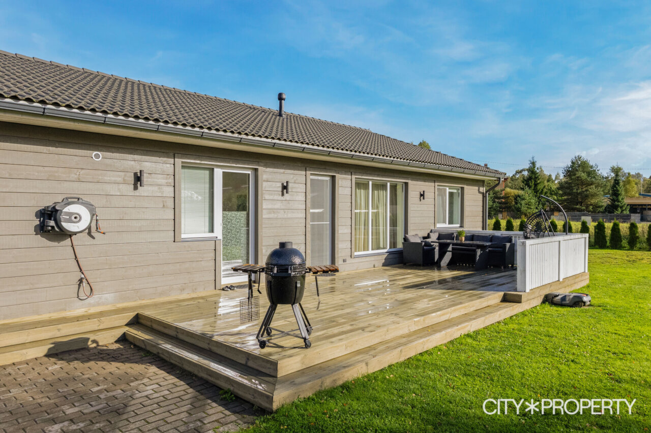 Maja on ehitatud avara planeeringuga, maja kõrvale rajatud terrass mis on kaetud süvaimmutatud laudisega.