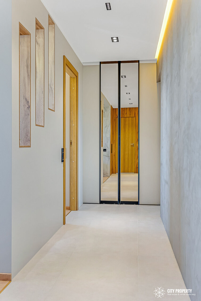 Vahetatud on kogu korteri elektrijuhtmestikud ja torustikud. Sisseehitatud mööbel selles kodus valmib eritellimusel just selle korteri jaoks.