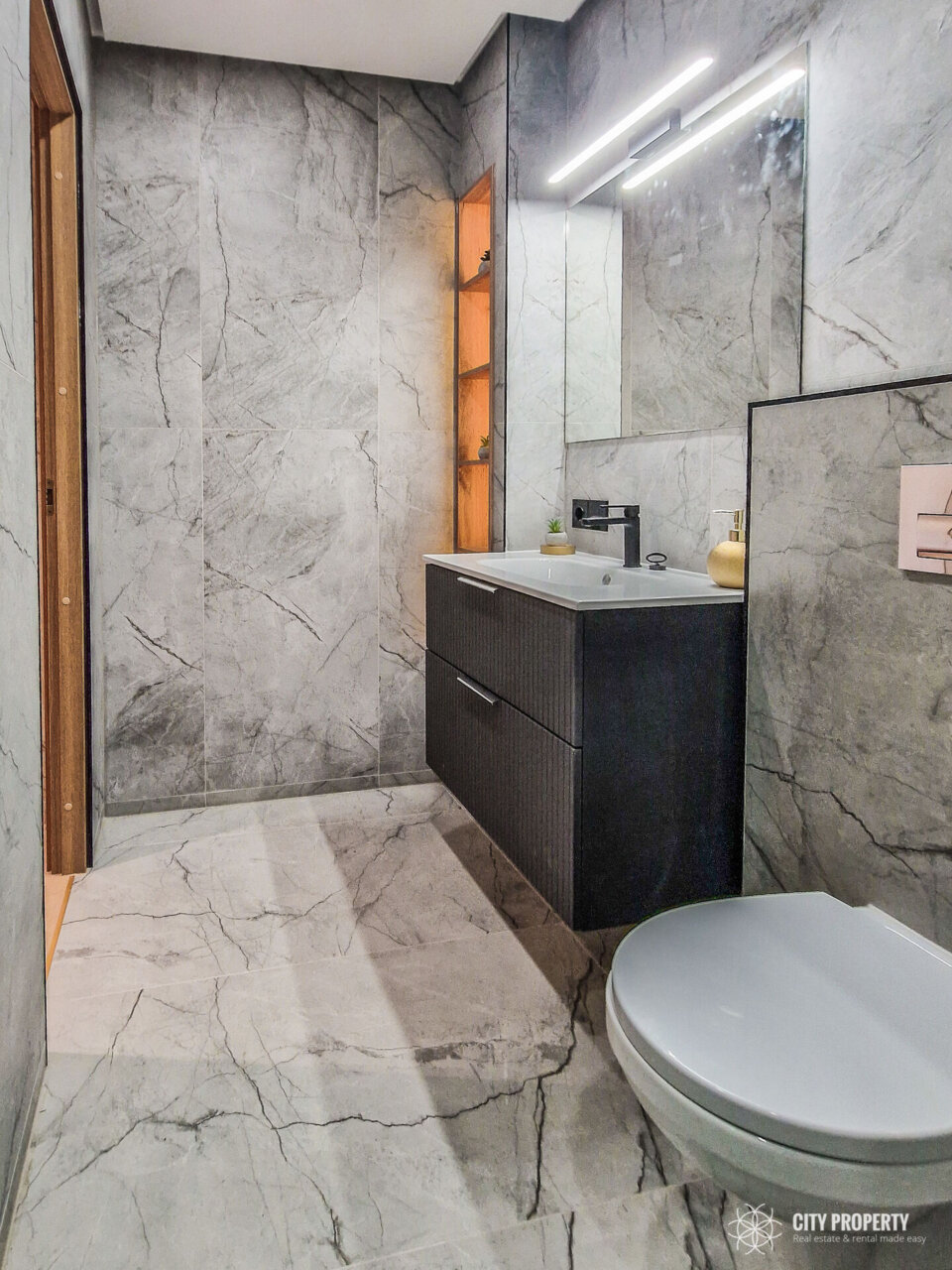 Vannitoa põrand ja seinad on plaaditud ning põrandat soojendab elektriline põrandaküte. Olemas on sundventilatsioon.