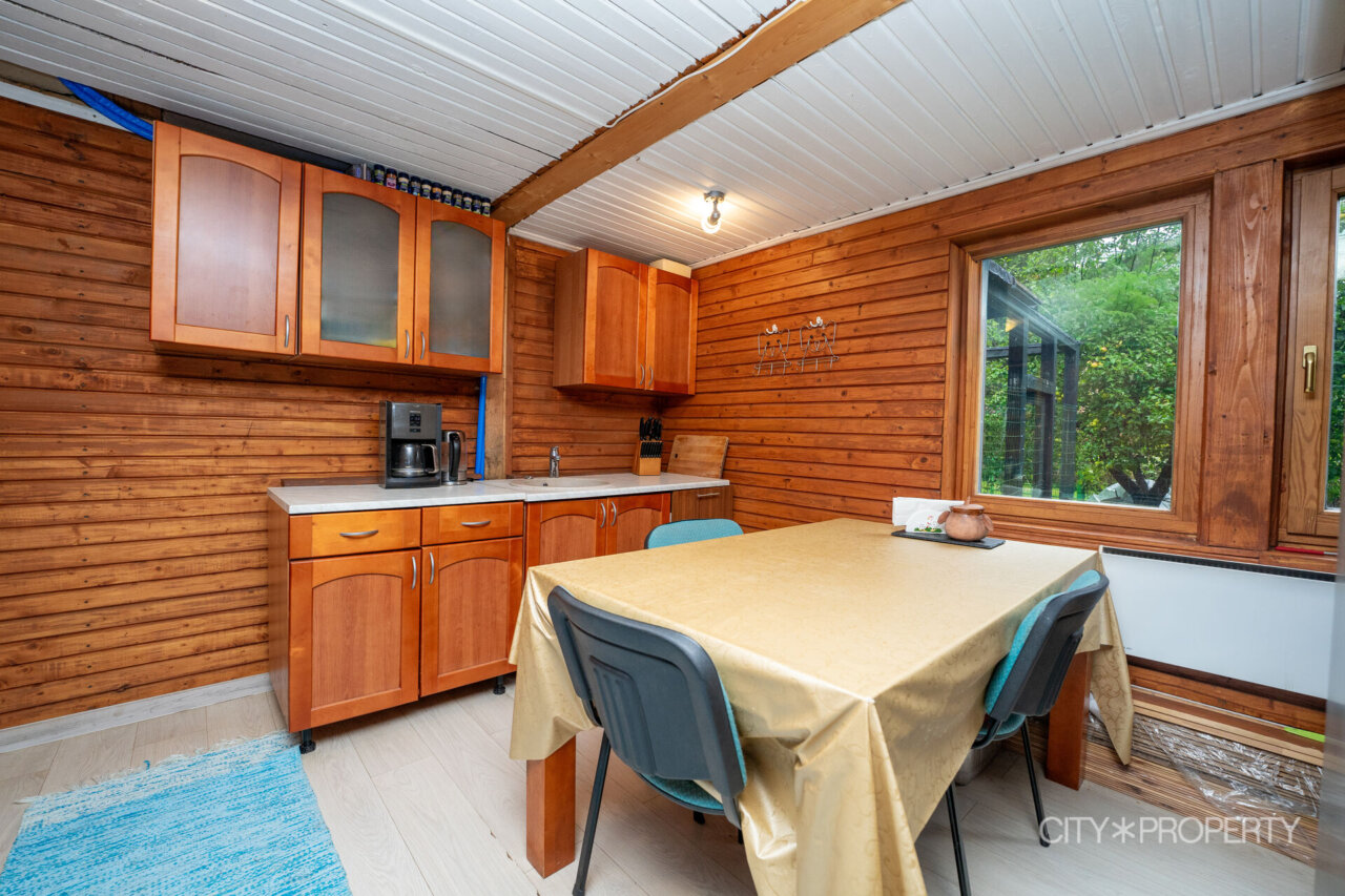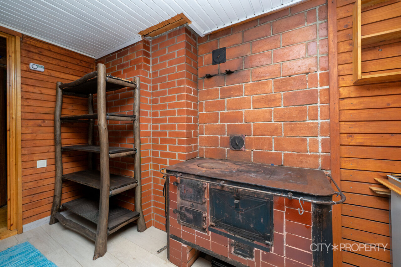 Esimesel korrusel paikneb ka eraldi köök – piisavalt ruumikas, et kõikidel pereliikmetel mõnus toimetada oleks. Köögis on elektripliit koos ahjuga ning eraldi puupliit.