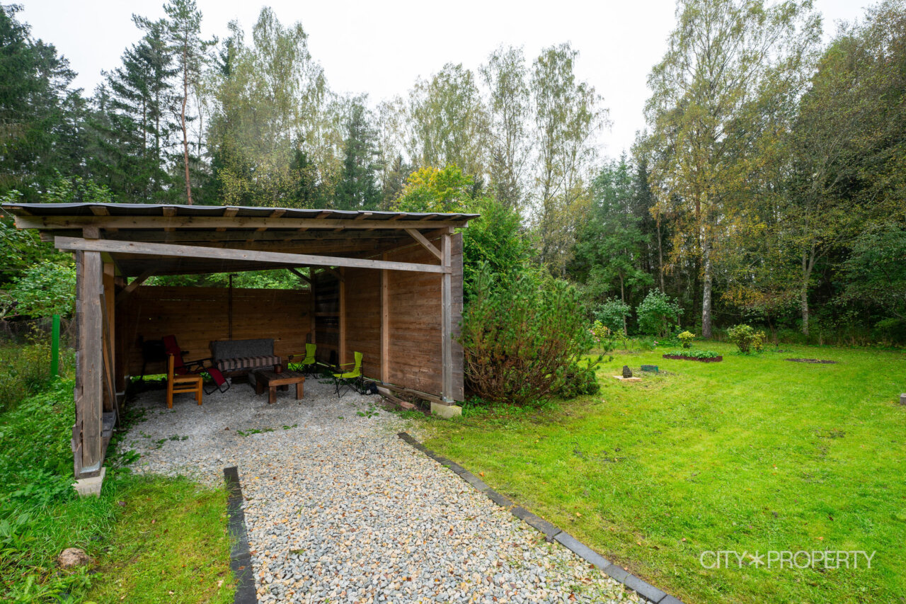Kinnistul on avar autovarjualune, mida saab kasutada ka välise istumisalana või ürituste korraldamiseks Võimalik suure aiamööblikomplektiga luua endale tore õue-lounge.
