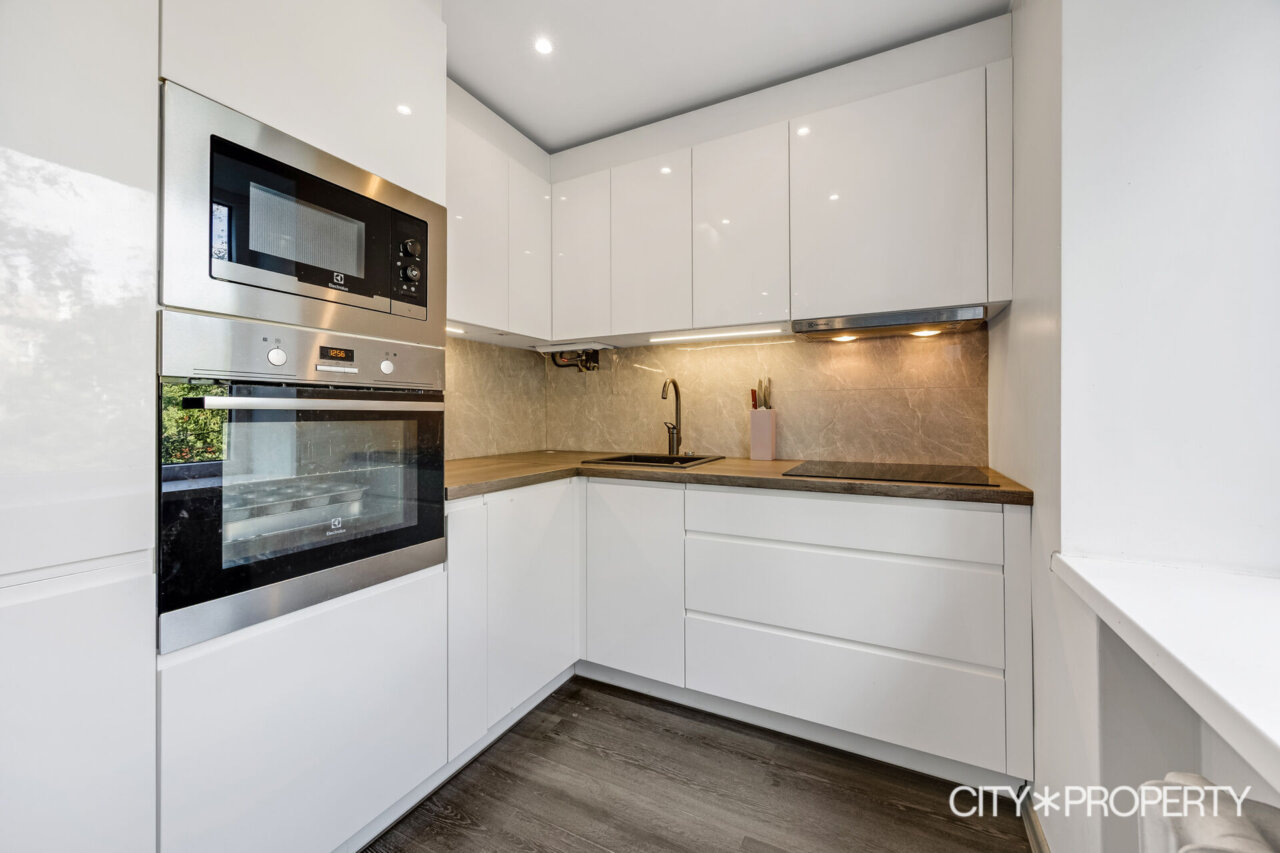 Kogu korter on ühtses stiilis kujundatud, tõelisele kodule omaselt on korteris piisavalt kapiruumi. Köök on funktsionaalselt sisustatud, olemas on külmkapp, pliit, ahi ning nõudepesumasin.