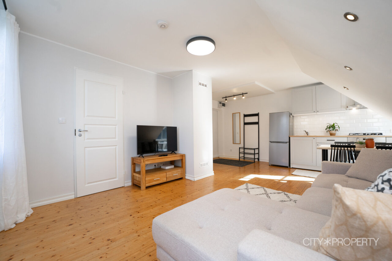 Korteri koosseisu kuulub avatud köögiga elutuba, magamistuba, wc/duširuum ning kaasaegne panipaik renoveeritud soklikorrusel.