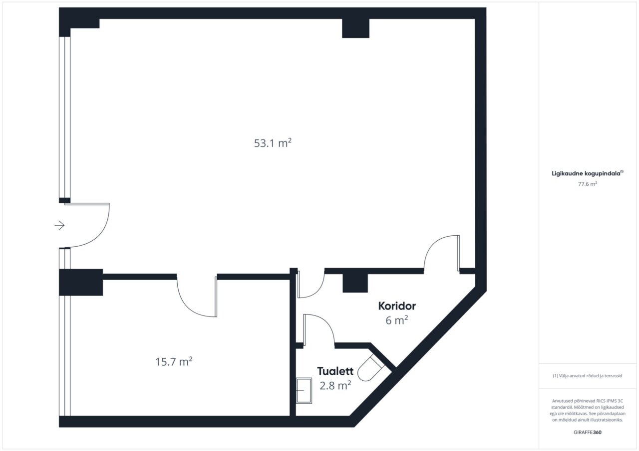 Äripinna koosseisu kuulub avar teenindusala, laoruum/kontor, wc ja veel eraldi tuba.