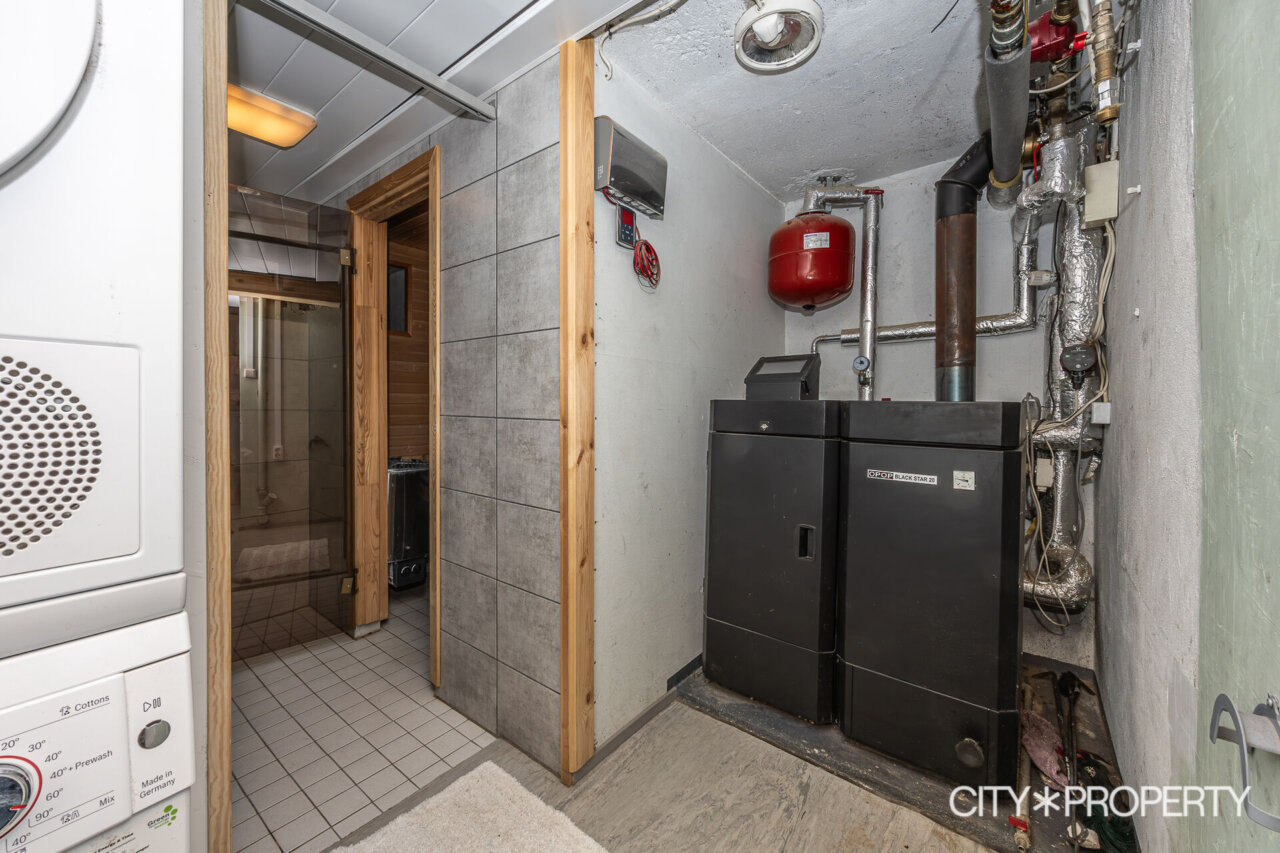 Kodu on varustatud erinevate küttelahendustega – olemas on nii lokaalne pelletikatel kui ka kaks kaminat ning energiatõhus õhksoojuspump koos jahutusfunktsiooniga. Köögis ja vannitoas on kaasaegne sisustus ning kogu korteri siseviimistlus on valdavalt heas seisukorras. Keraamilised plaadid ja naturaalparkett loovad kodus kvaliteetse ja ajatu interjööri.