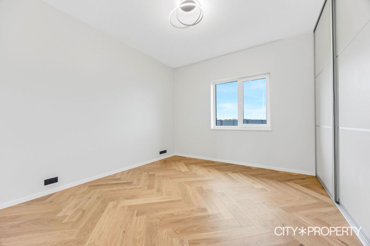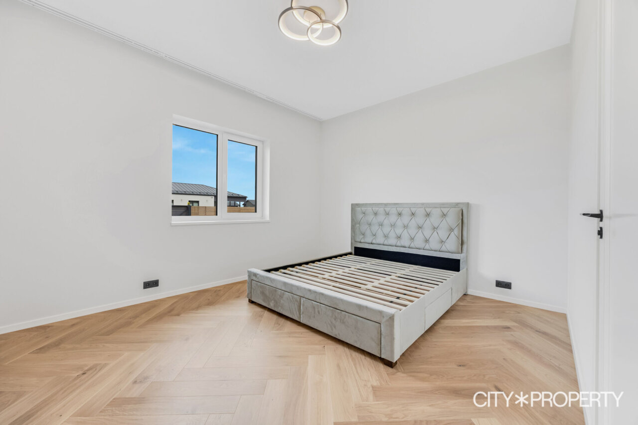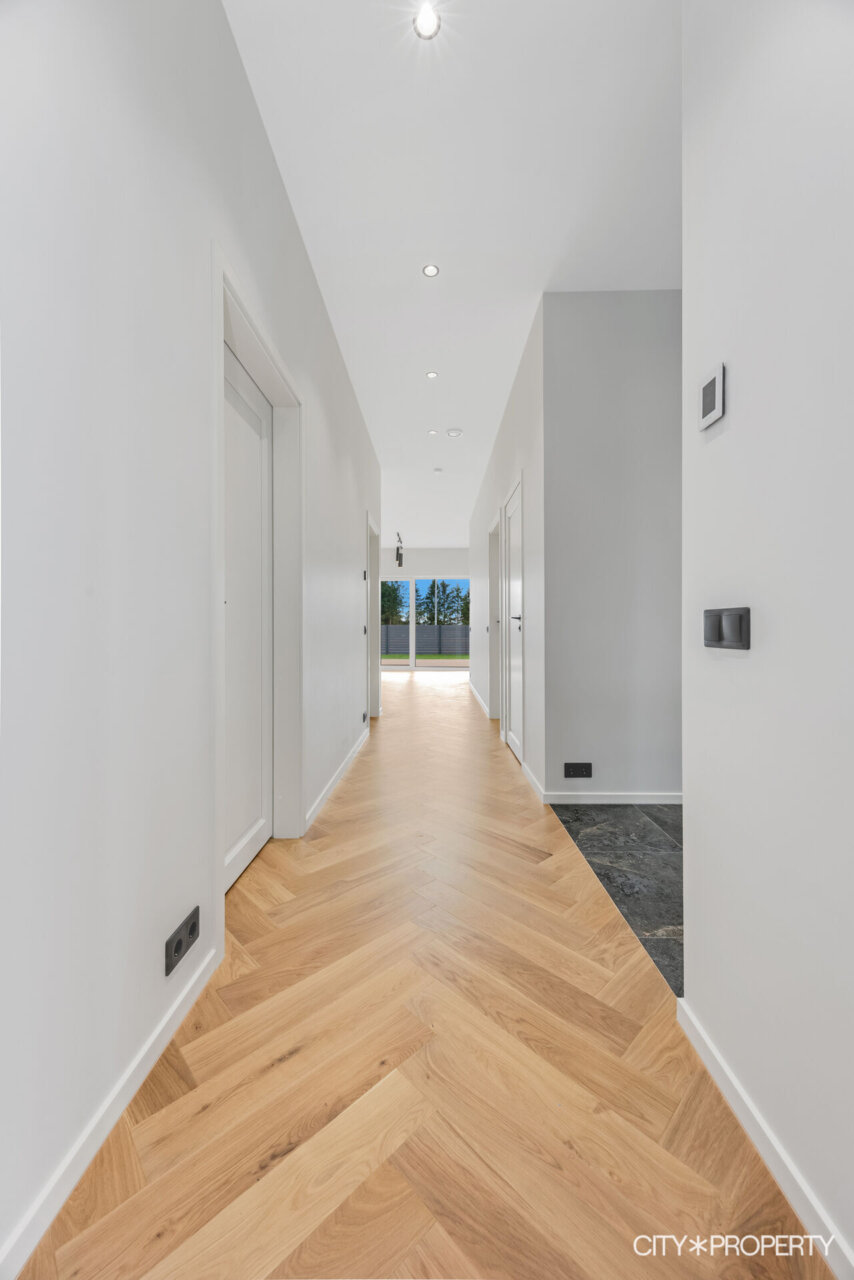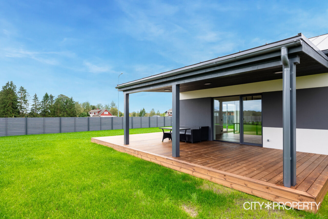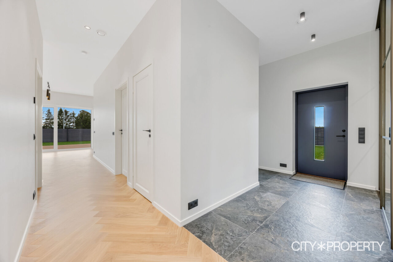 Müügile on tulnud eramu omadustega majaosa, maja koosseisu kuuluvad avatud köök-söögituba ja elutuba (37.2 m²), neli magamistuba (13.8m², 13.4m², 12.8m² ja 12.8m²), vannituba/tualett/saun (15.8m²), eraldi tualett (2m²), walk-in garderoob (3.2m2), tehnoruum (3m²), esik (5m²) ja koridor (10m²). Elutoast pääs, varjualusega, päikesepoolsele terrassile (24m²) kus suvel mõnus pere või sõpradega aega veeta, lisaks kuulub maja juurde autovarjualune (26m²).