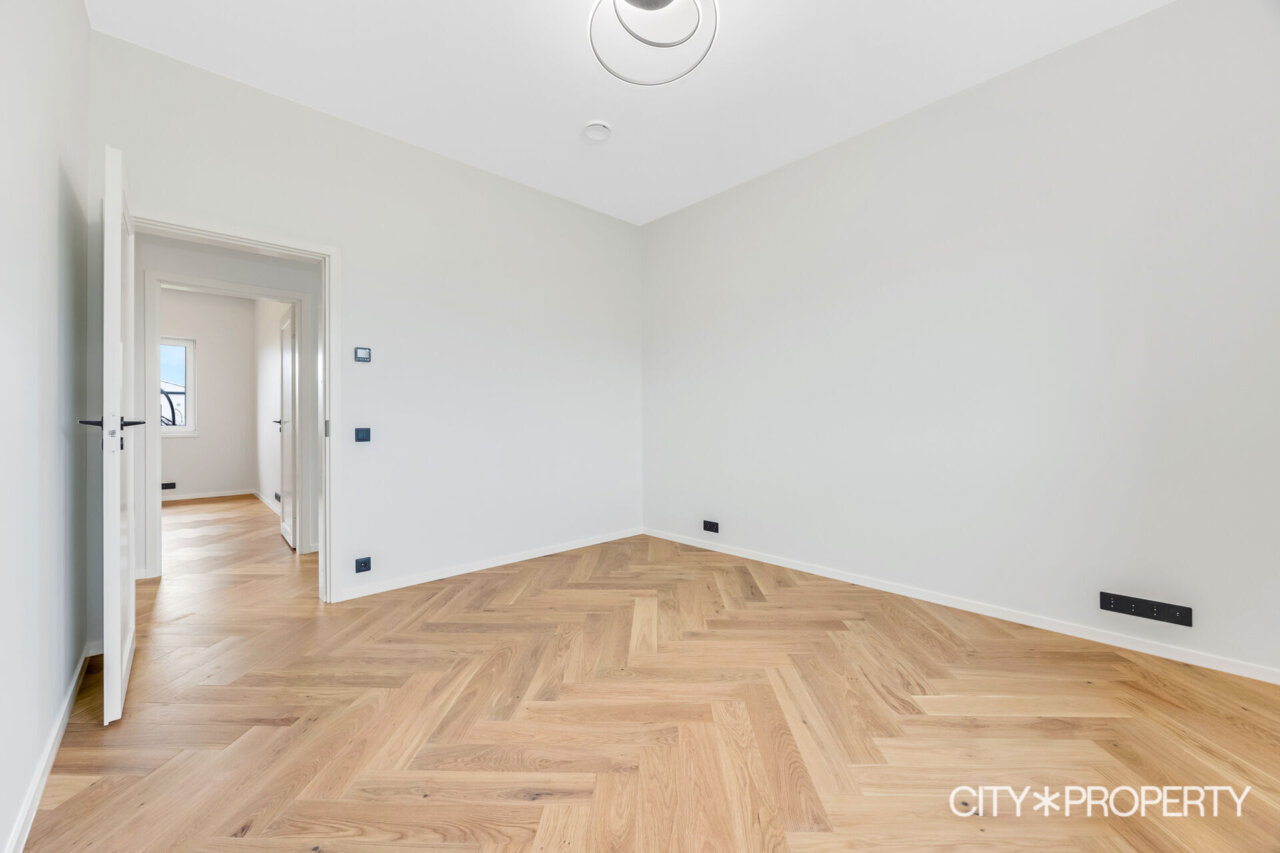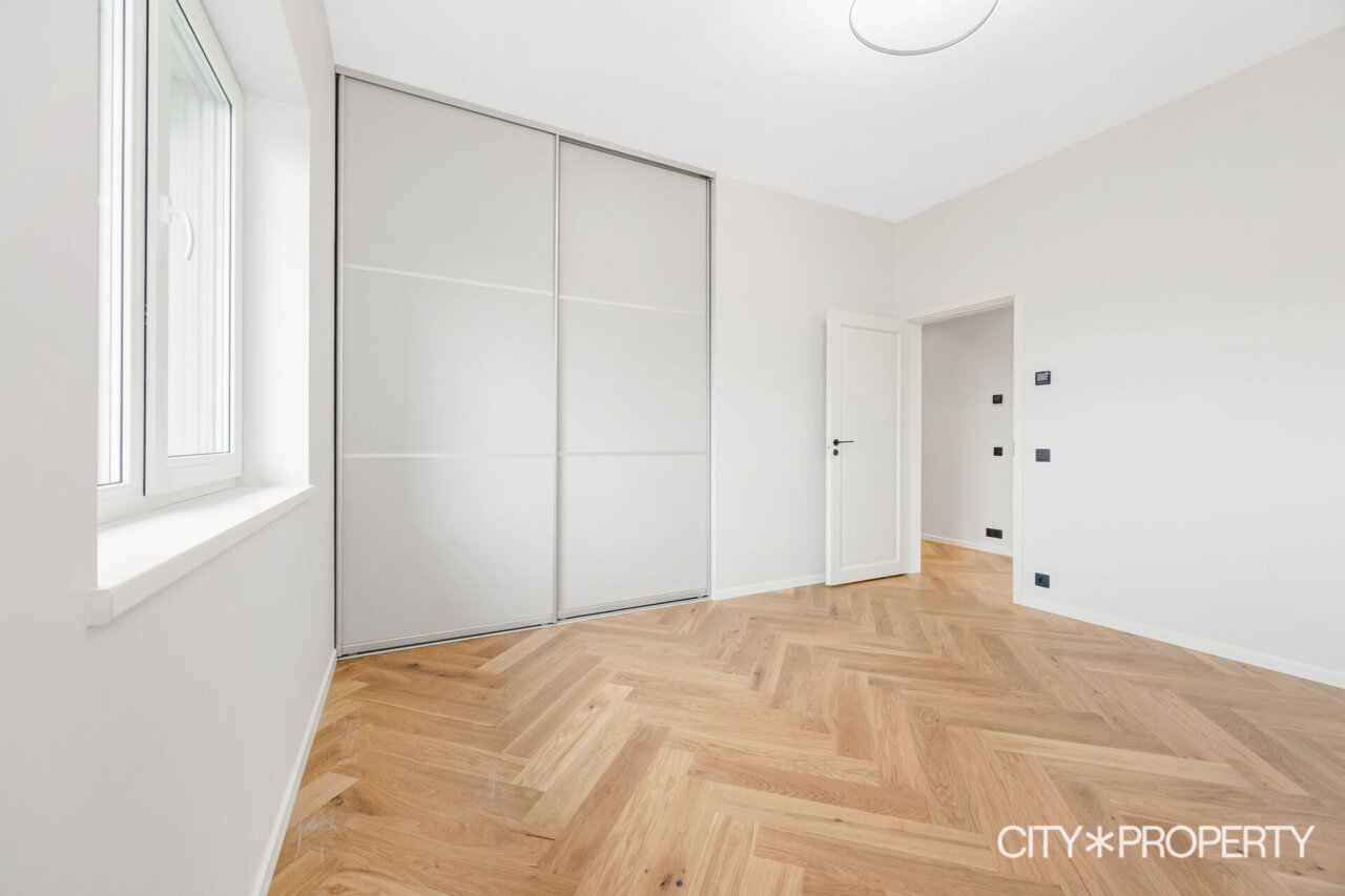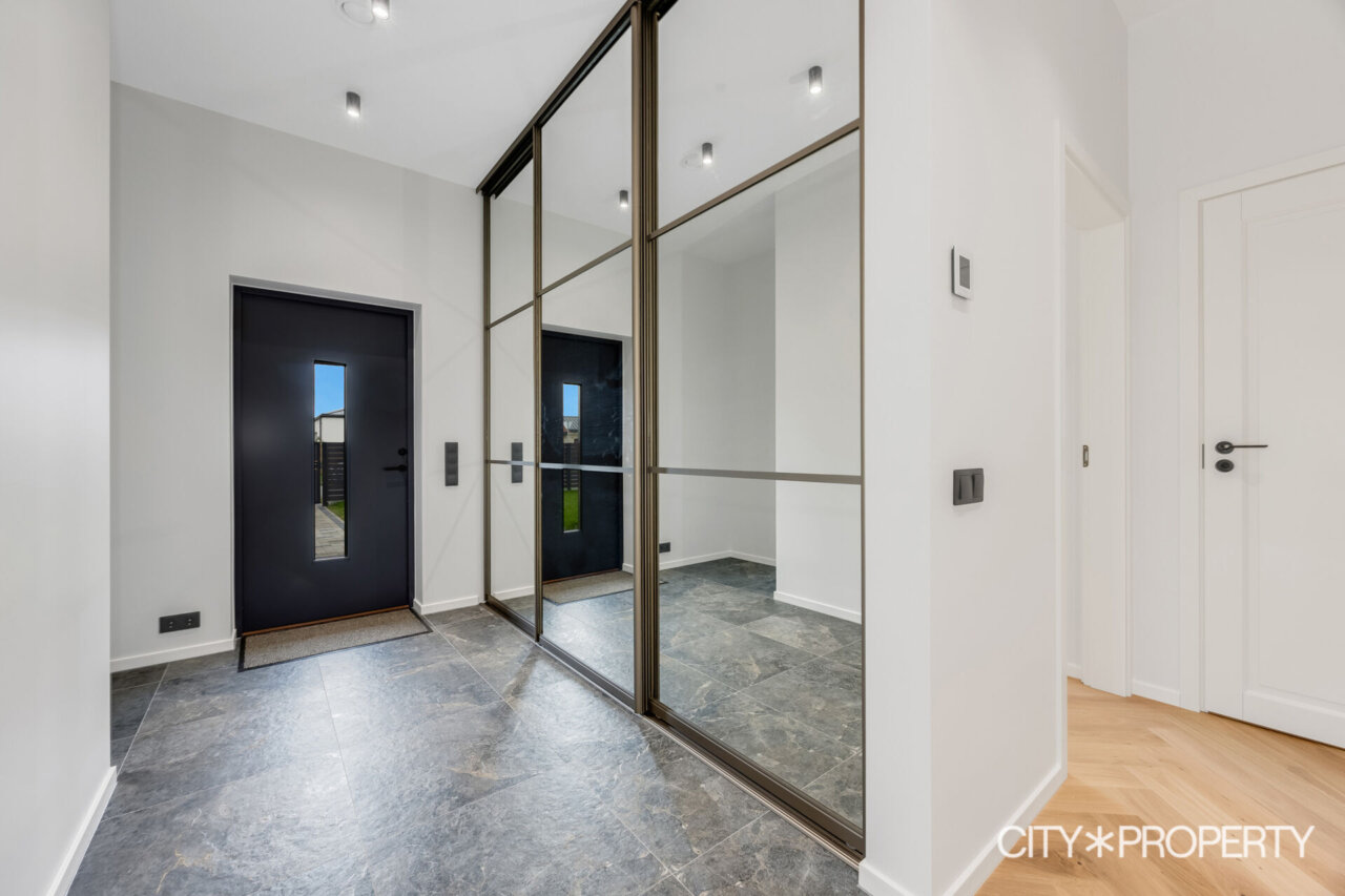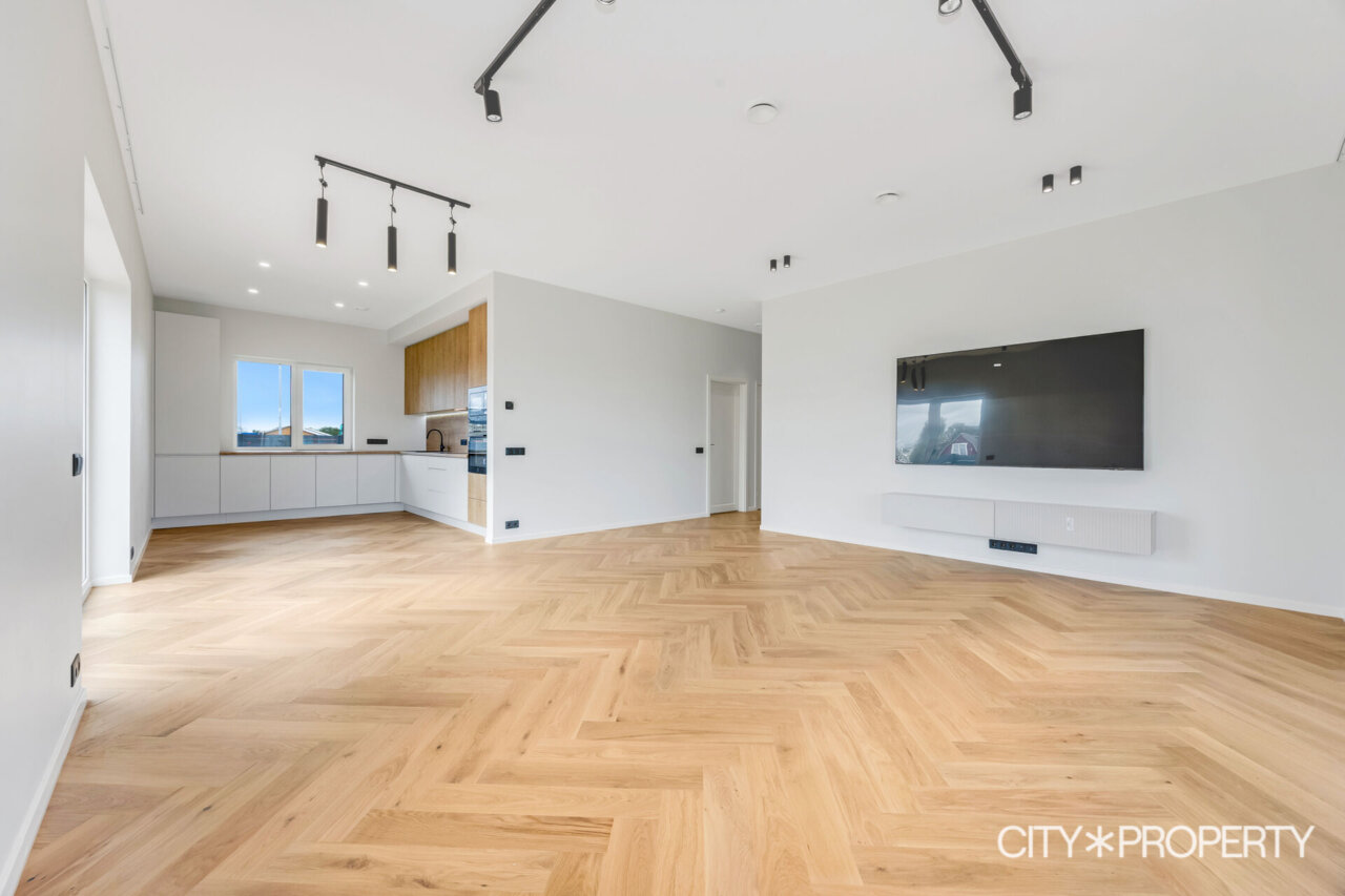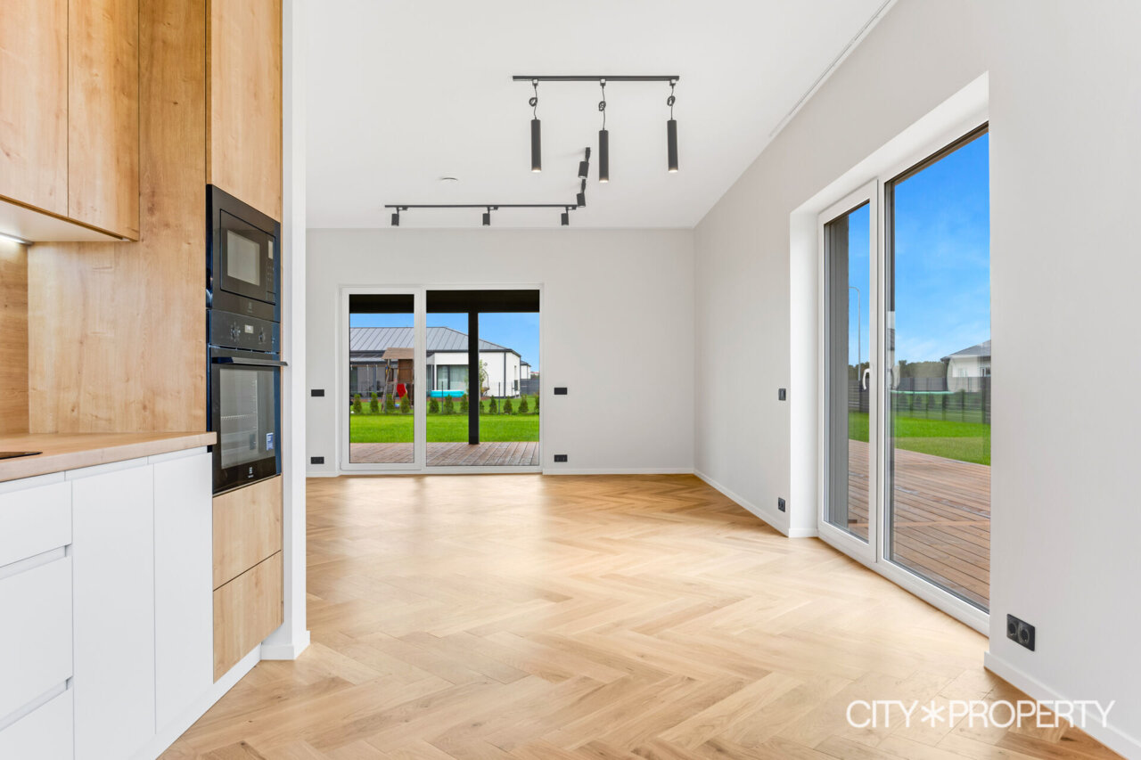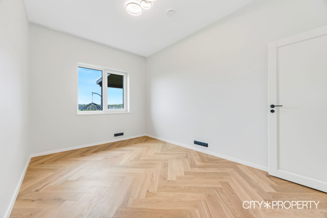 Müügile on tulnud eramu omadustega majaosa, maja koosseisu kuuluvad avatud köök-söögituba ja elutuba (37.2 m²), neli magamistuba (13.8m², 13.4m², 12.8m² ja 12.8m²), vannituba/tualett/saun (15.8m²), eraldi tualett (2m²), walk-in garderoob (3.2m2), tehnoruum (3m²), esik (5m²) ja koridor (10m²). Elutoast pääs, varjualusega, päikesepoolsele terrassile (24m²) kus suvel mõnus pere või sõpradega aega veeta, lisaks kuulub maja juurde autovarjualune (26m²).