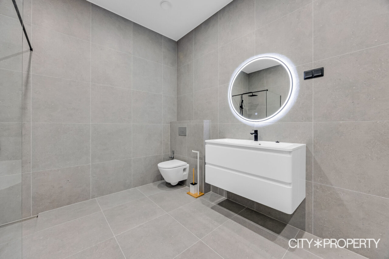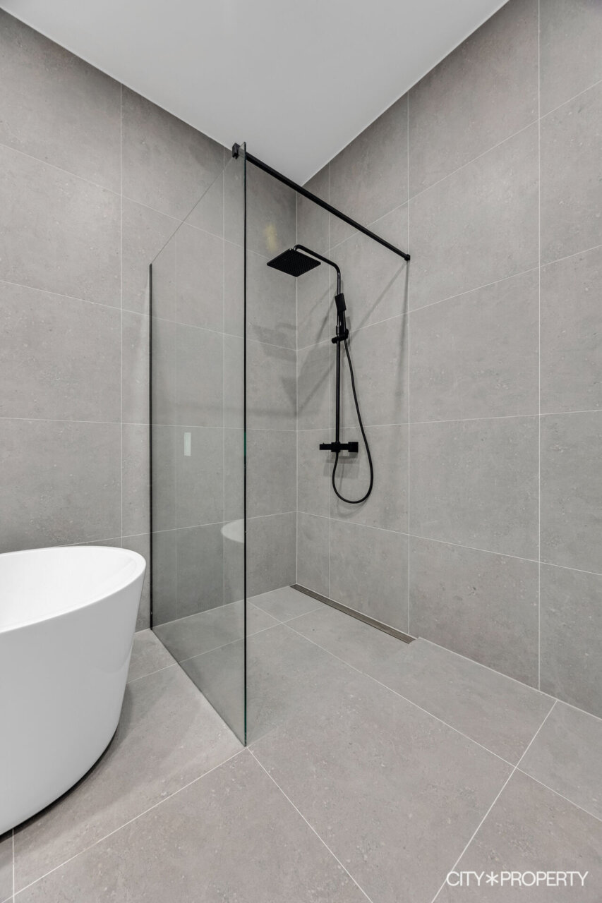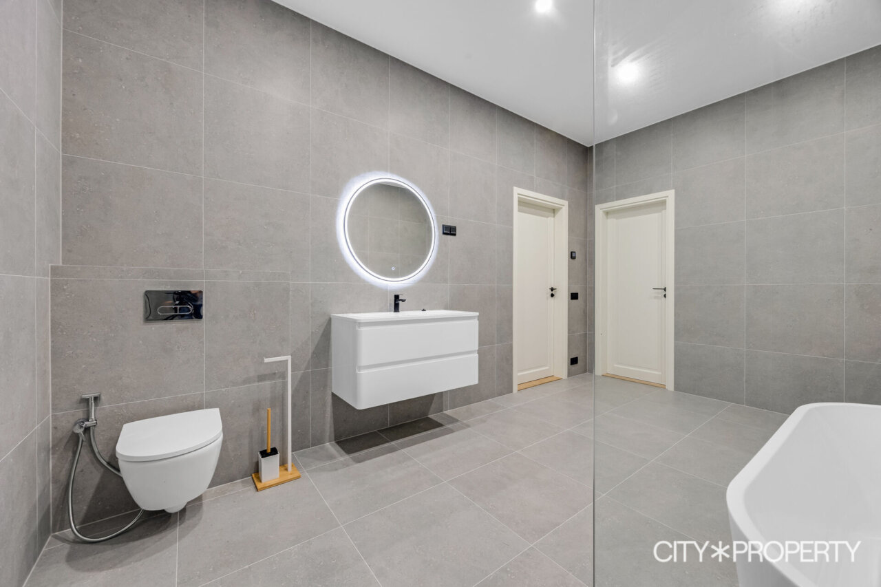 Vannitoa ja esiku põrand – must marmor.