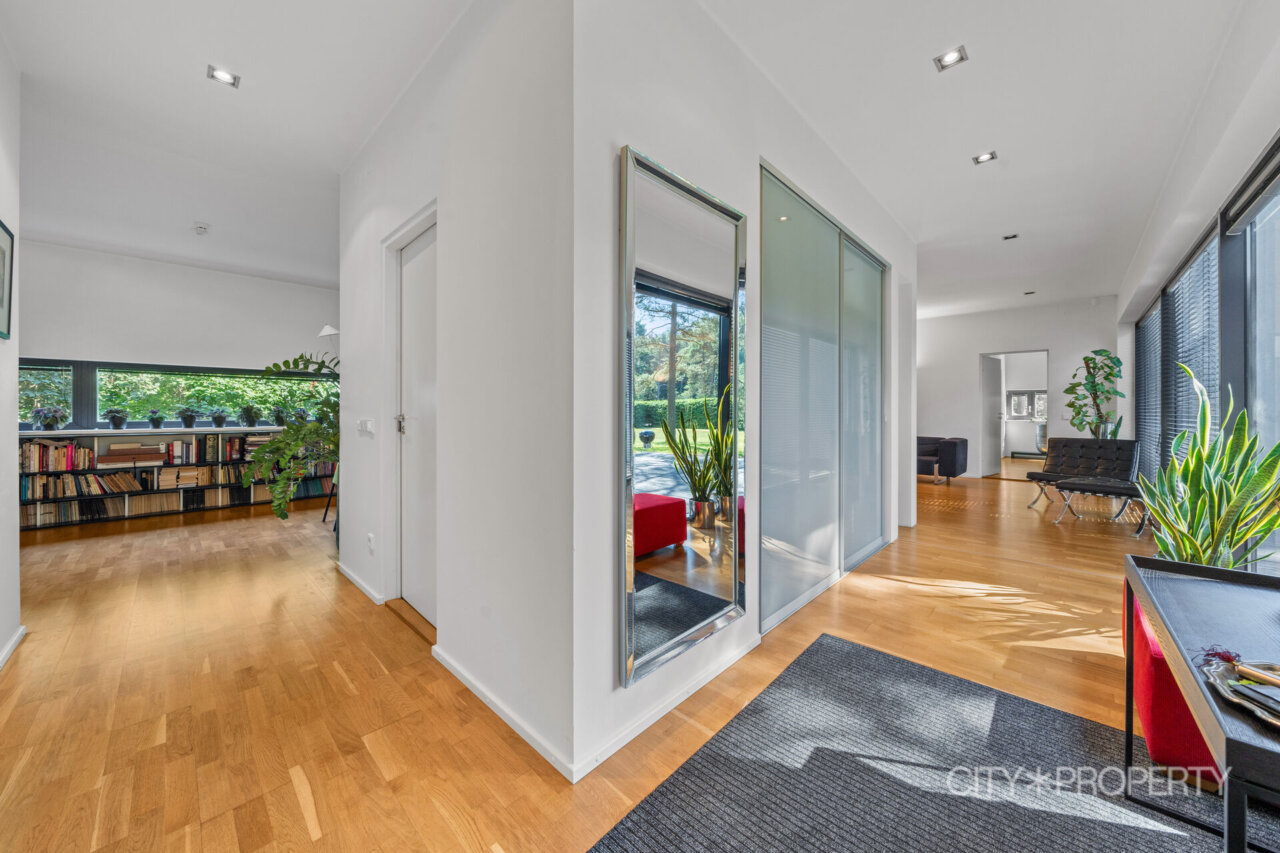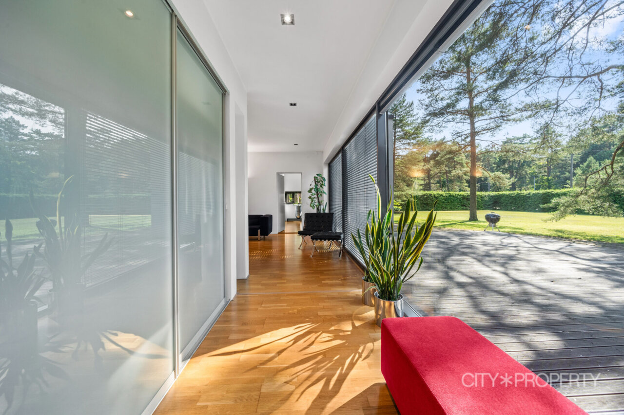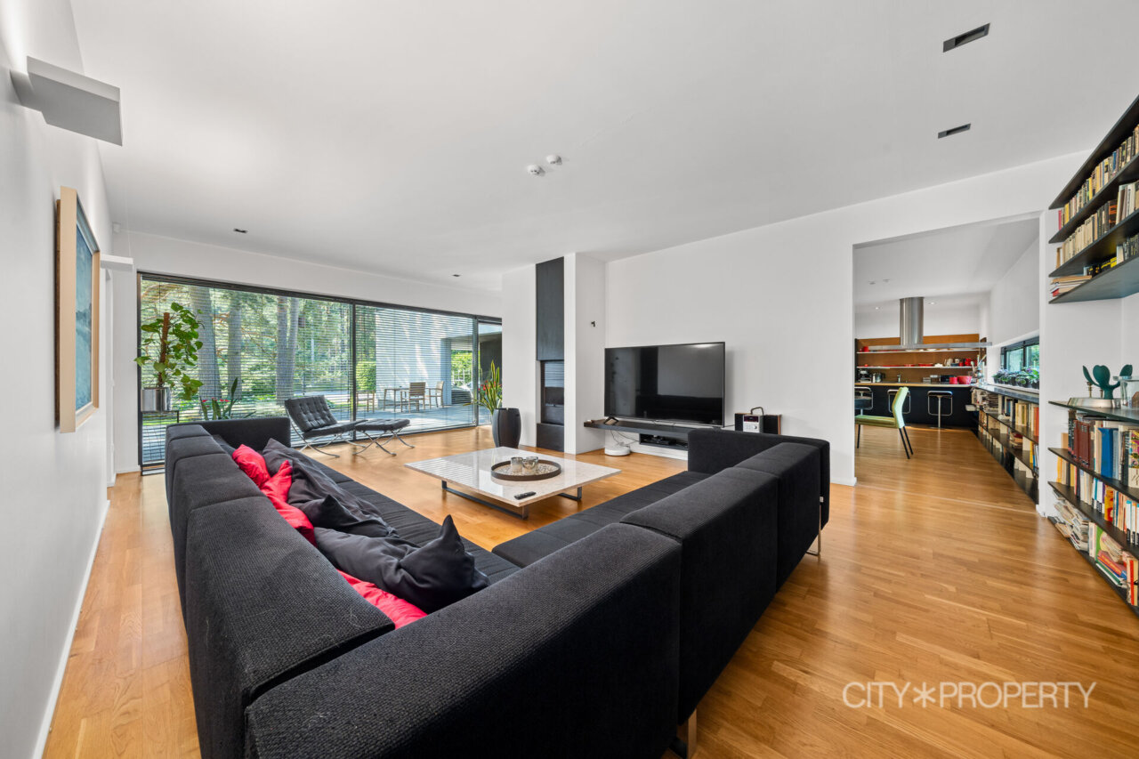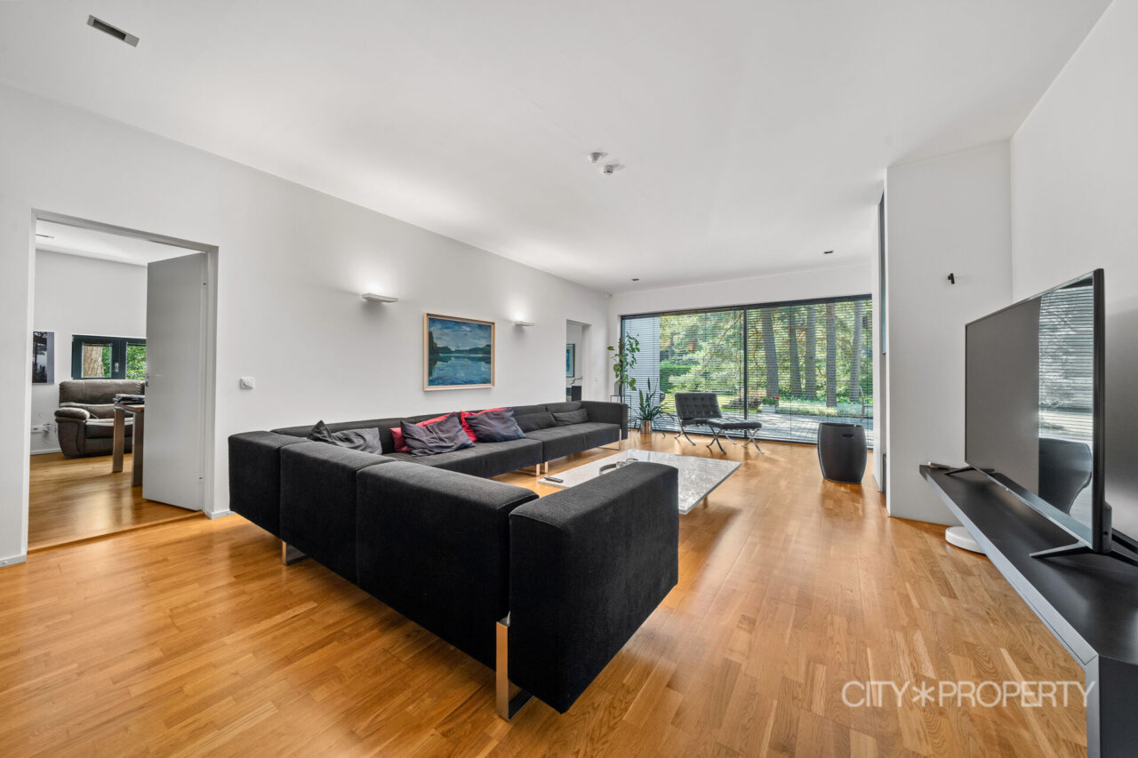 Funkstiilis perevilla, projekteeritud arhitekt Emil Urbeli poolt, kuhu on päriselt mõnus koju jõuda. Esimene mulje on valgus ja avarus – suured aknad raamivad aeda nii, et rohelus saab interjööri loomulikuks osaks. Elutoa-köögi telg avaneb kahe terrassi suunas, pikendades siseruumi suveks õue. Hoone paikne muljetavaldavalt suurel, u 1 991 m² privaatsel kinnistul, mis loob pereelule rahuliku, turvalise ja ruumika raami.