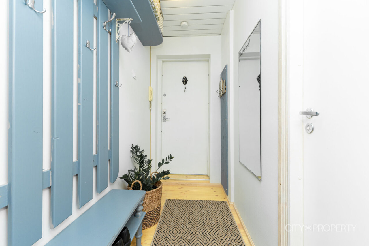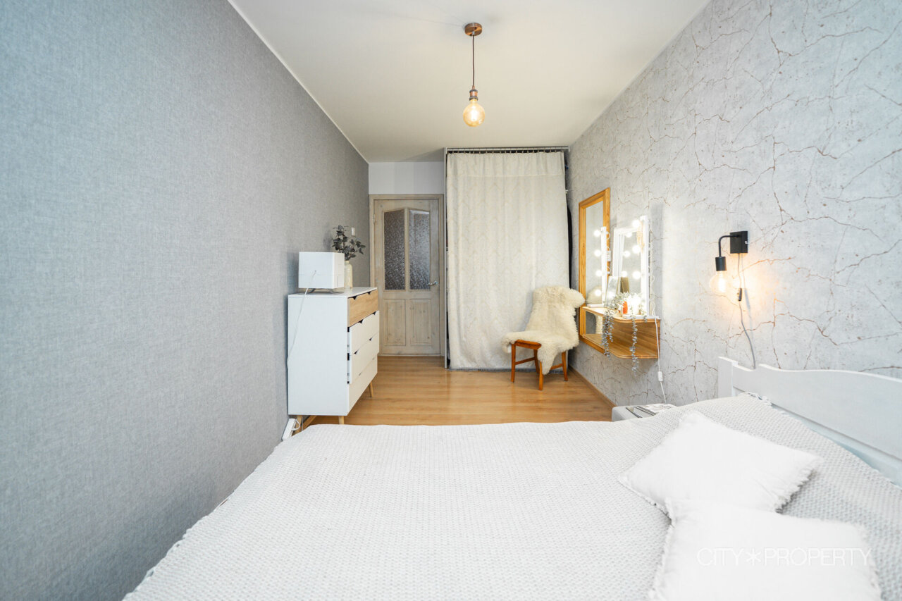 Korteri siseviimistluses on kasutatud heledaid toone, mis annavad avaruse tunde. Esikus, elutoas ja köögis on naturaalne õlivahaga viimistletud laudpõrand, magamistoas laminaatparkett. Magamistoas on mugav sisseehitatud garderoob, kuhu saab soovi korral lisada liuguksed.