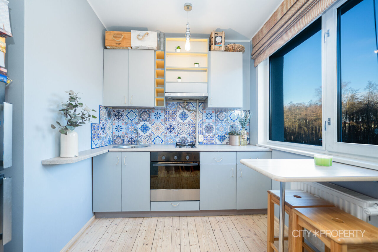 Köögis on kaasaegne ja funktsionaalne mööbel, integreeritud gaasipliidi ja elektriahjuga. Korteril on turvaline metallist uks ning lisaks kuulub panipaik keldris.