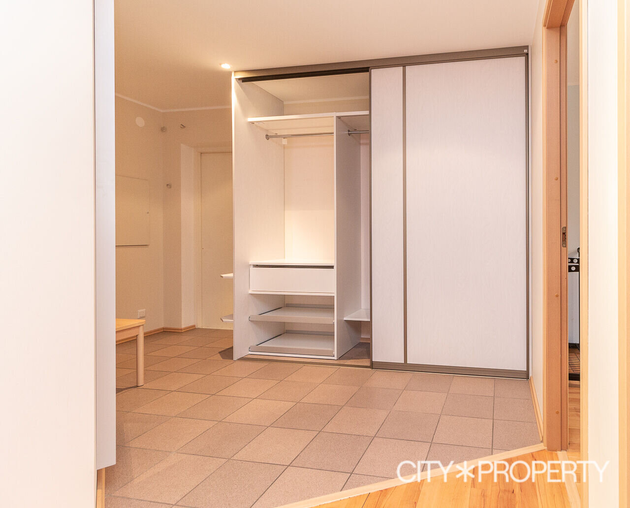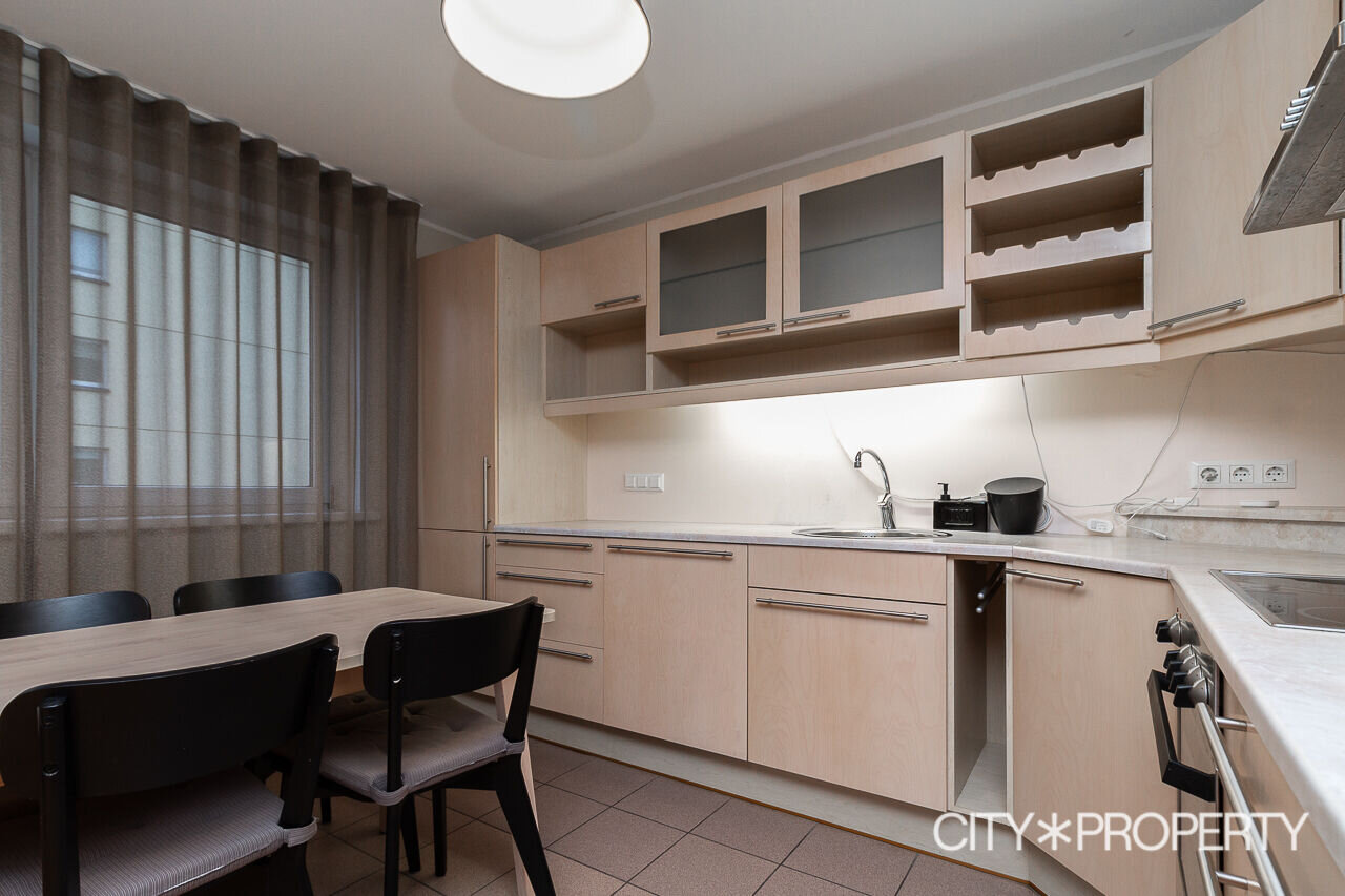 Korteri koosseisu kuuluvad esik, avatud köögiga elutuba, rõdu, saunaga WC-duširuum ning kaks eraldi asetsevat magamistuba. Korterisse jääb kogu piltidel nähtav mööbel ja tehnika (köögimööbel koos keraamilise pliidi, praeahju, nõudepesumasina ja külmikuga ning pesumasin). Põrandaid katab naturaalne parkett; esikus, kööginurgas ja sanitaarruumis on keraamiline plaat.