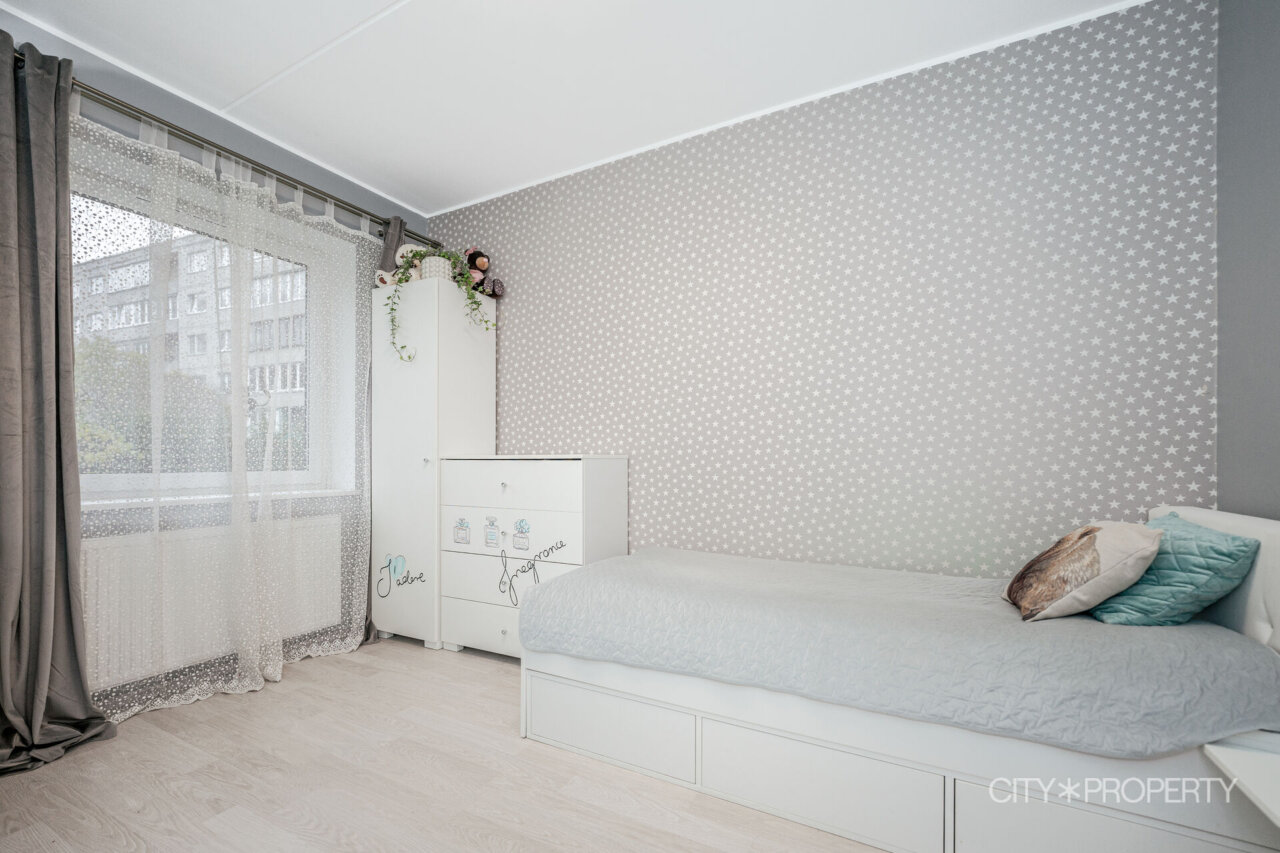 Lisaks jäävad korterisse kardinad ning garderoobi riiulid, mis aitavad eluruume korrastatuna hoida.