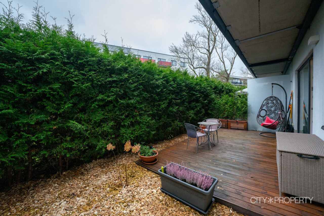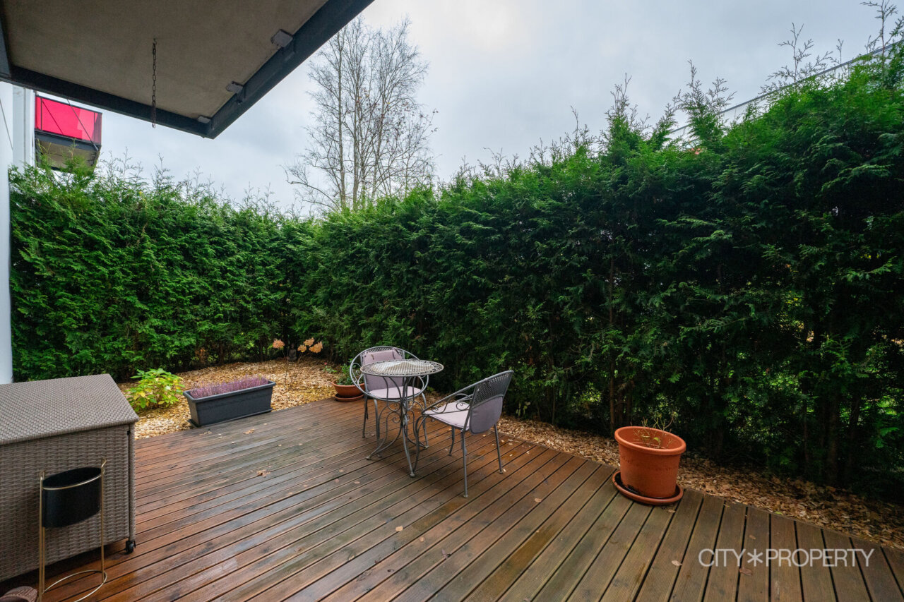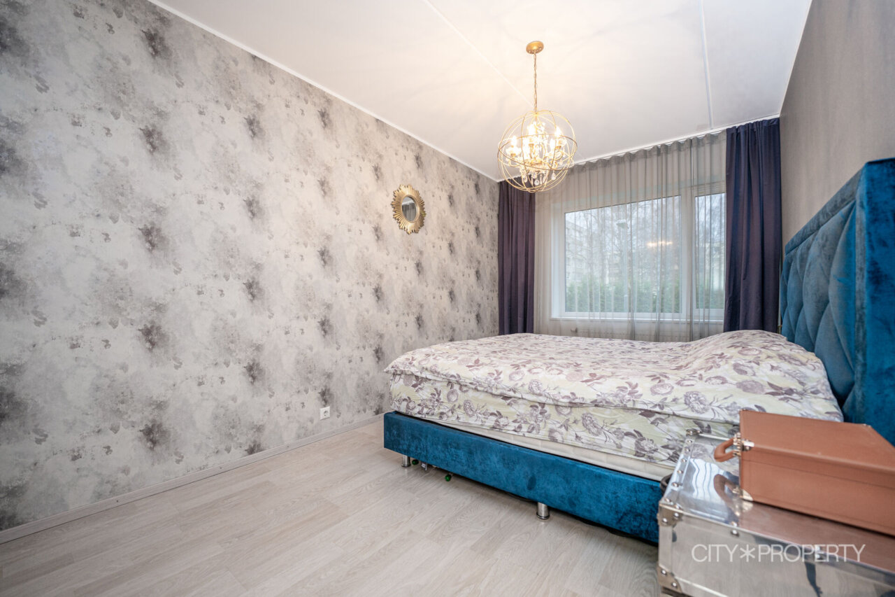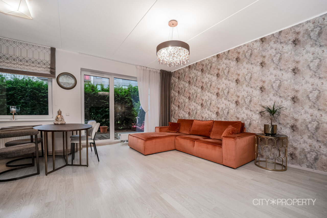 Müüa avar ja valgusküllane 3-toaline korter 1. korrusel, mille suurimaks väärtuseks on privaatne terrass. Terrassi ümbritsevad kaunid elupuud, mis loovad rahuliku ja privaatsust pakkuva õhkkonna ning teevad sellest ideaalse koha lõõgastumiseks. Korter on läbimõeldud planeeringuga, pakkudes mugavat ja funktsionaalset elukeskkonda. Elutoast koos avatud köögiga pääseb otse terrassile, lisaks on korteris kaks magamistuba, vannituba, eraldi WC ja valgusküllane ja mahukas garderoob, mis pakub lisamugavust ja korrastatust igapäevaelus. Köök on täielikult varustatud integreeritud tehnikaga – keraamiline pliit, elektriahi, nõudepesumasin, külmkapp ja mikrolaineahi. Korteris on hoolikalt valitud valgustid, mis loovad hubase ja meeldiva õhkkonna nii elutoas, köögis kui ka magamistubades. Suured elutoa aknad tagavad rohkelt loomulikku valgust. Põrandatel on kvaliteetne laminaatparkett ning vannitoas ja WC-s lisab mugavust põrandaküte. Korter müüakse koos kogu mööbli ja sisustusega, mis muudab sissekolimise uuele omanikule eriti mugavaks.