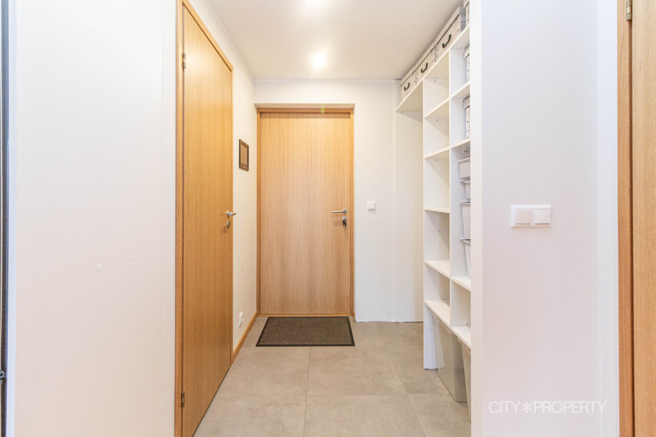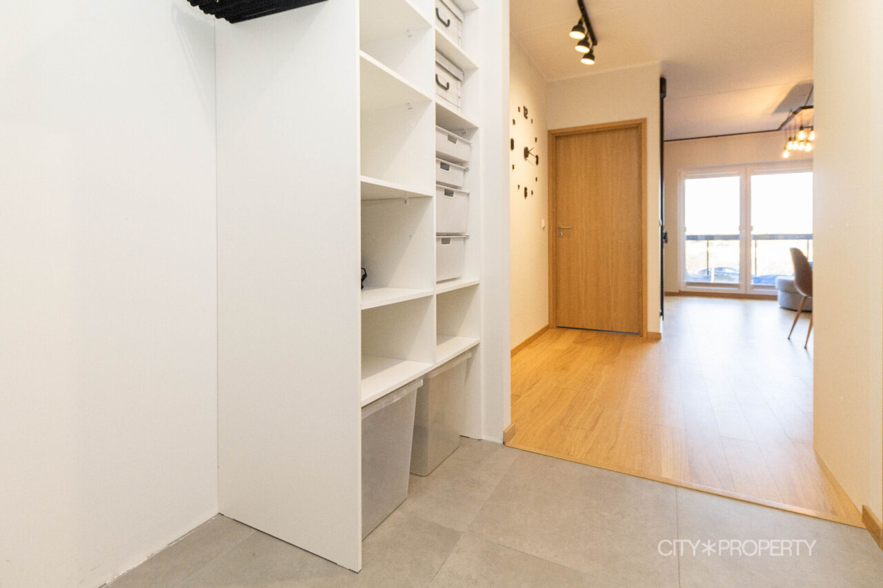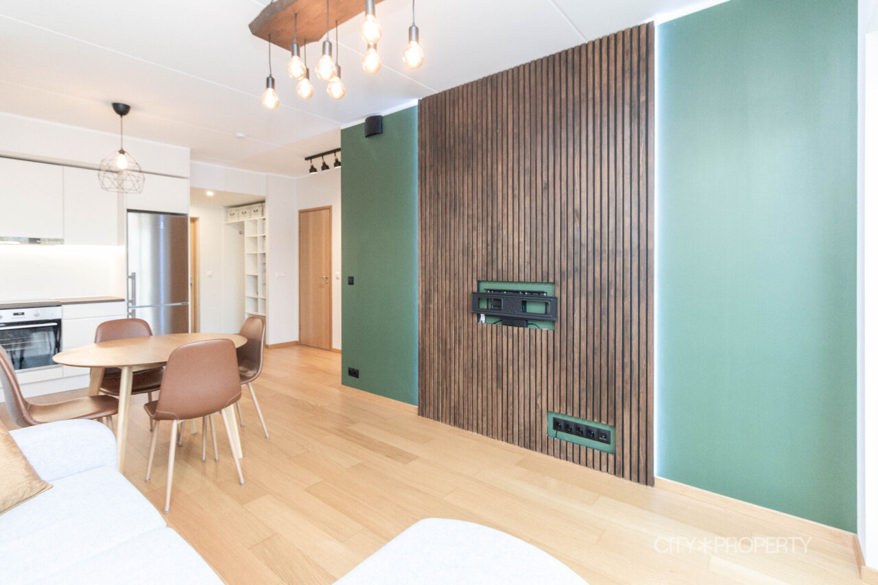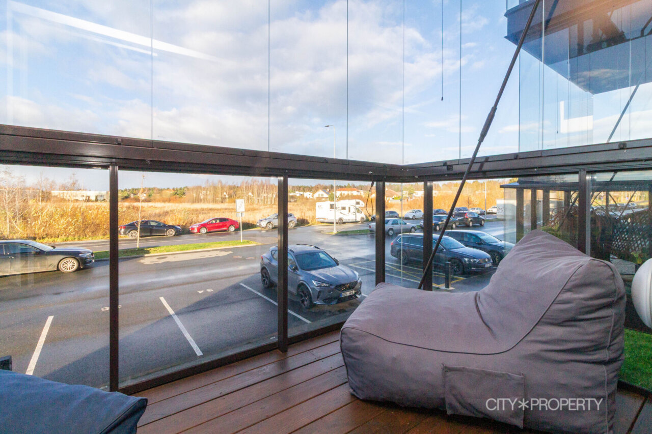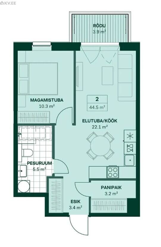 Korter on avatud planeeringuga ja õhtupäikese poolne (ilusad päikeseloojangud). Elamispind 44,5m2 ja klaasitud rõdu 3,9m2. Korteri koosseisu kuuluvad: esik koos sissehitatud garderoobikappiga, elutuba avatud köögiga ja tehnikuga(külmkapp, ahi, pliit, nõudepesumasin), magamistuba kus on hämarduvad juhtmevaba lülitiga valgustid, madratsiga voodi ja mahukas garderoobikapp. Elutoas on diivani-voodi ja söögilaud koos toolidega. Korteri elutoale lisab avarust moodne klaasitud rõdu, mis lisab igapäevaelule mitmeid mugavusi ja eeliseid. Magamistuppa toovad valgust suured maast laeni aknad.