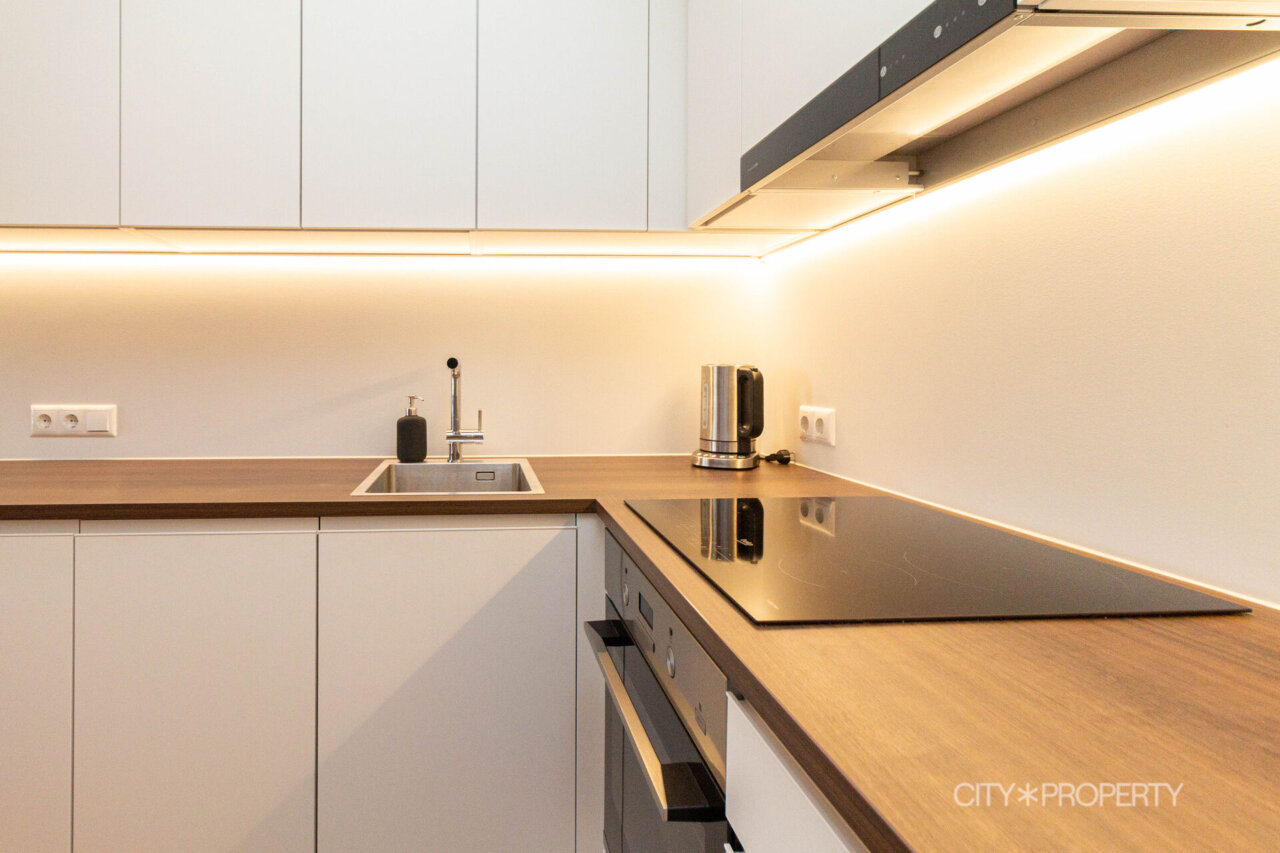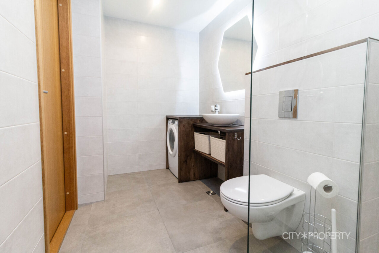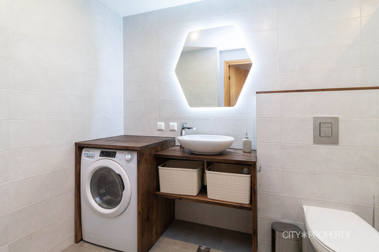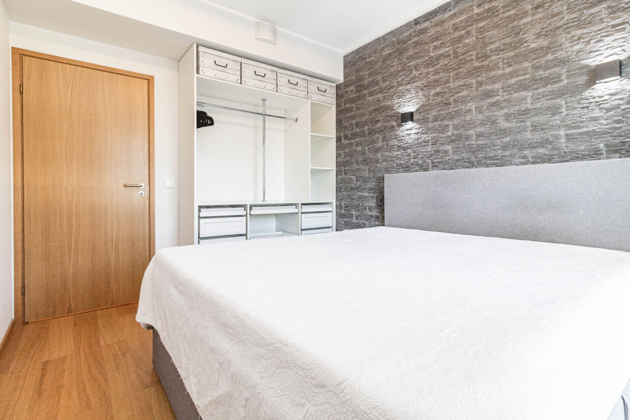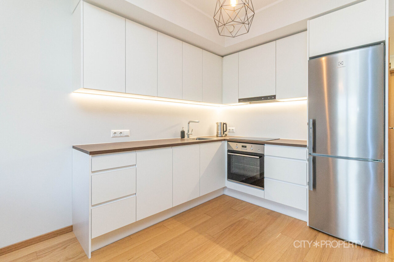 Korter on avatud planeeringuga ja õhtupäikese poolne (ilusad päikeseloojangud). Elamispind 44,5m2 ja klaasitud rõdu 3,9m2. Korteri koosseisu kuuluvad: esik koos sissehitatud garderoobikappiga, elutuba avatud köögiga ja tehnikuga(külmkapp, ahi, pliit, nõudepesumasin), magamistuba kus on hämarduvad juhtmevaba lülitiga valgustid, madratsiga voodi ja mahukas garderoobikapp. Elutoas on diivani-voodi ja söögilaud koos toolidega. Korteri elutoale lisab avarust moodne klaasitud rõdu, mis lisab igapäevaelule mitmeid mugavusi ja eeliseid. Magamistuppa toovad valgust suured maast laeni aknad.