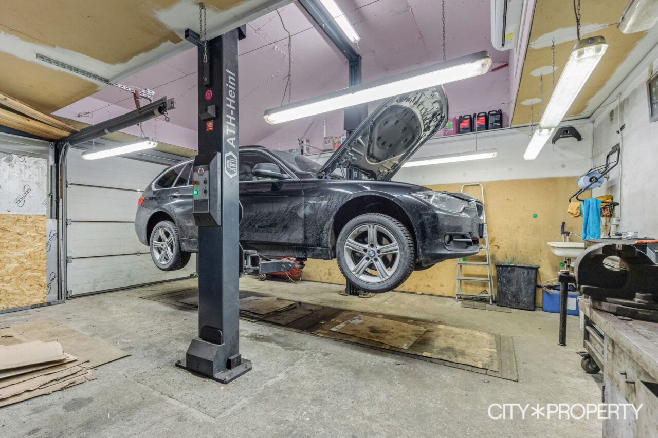 Garaaž ei ole pelgalt parkimiseks, vaid täisfunktsionaalne töökeskkond, mida kohtab elamukinnistute juures harva.