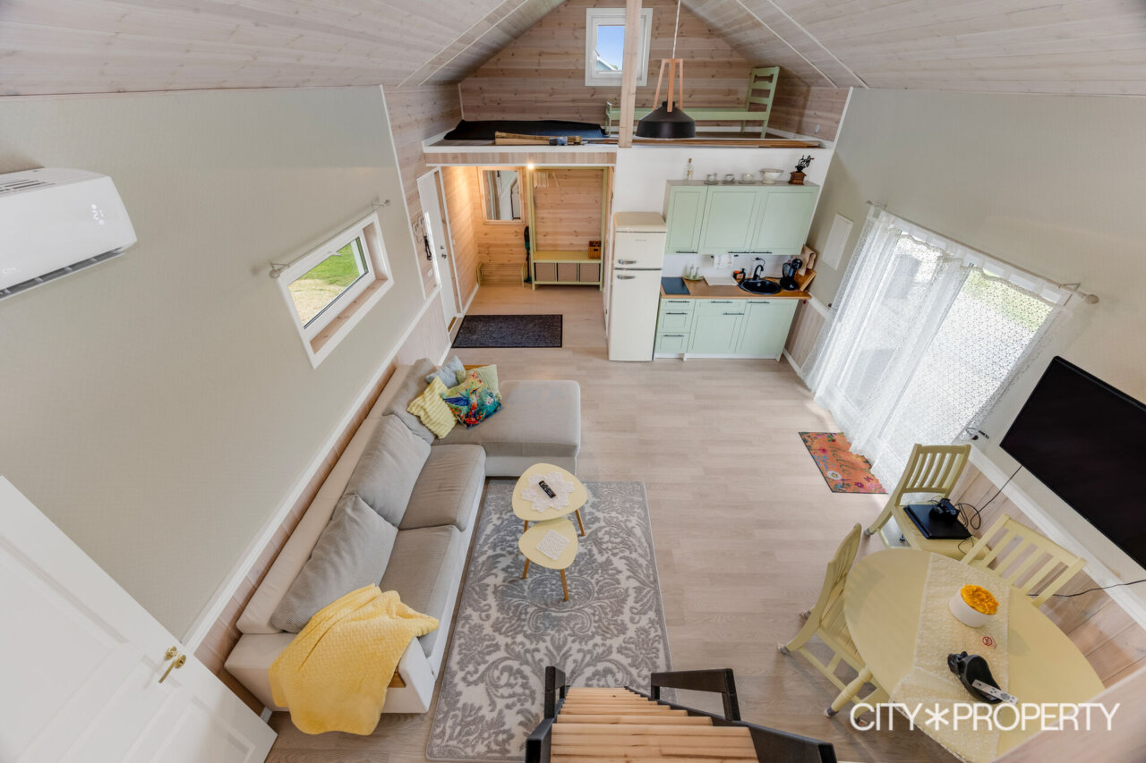 Esimesel korrusel asuvad avar elutuba koos kööginurgaga, magamistuba ja WC koos dushiga.