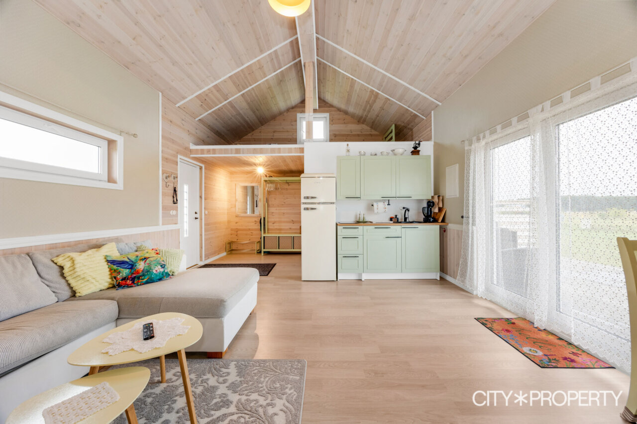 Siseviimistluses on kasutatud valgeks vahatud laudist ja heledat saareparketti, mis loovad ruumidesse hubasuse ja valgusküllase õhkkonna.