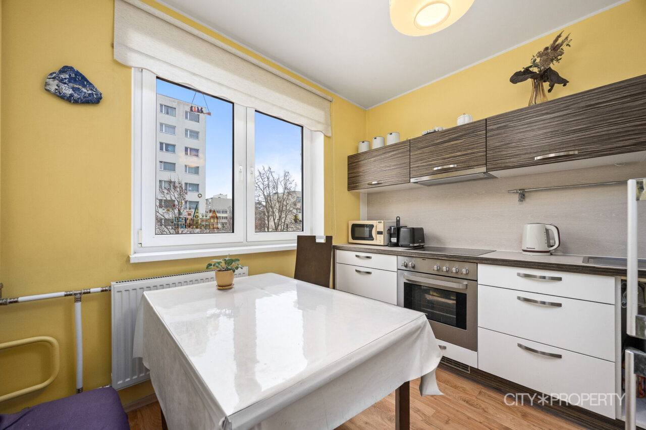 Kööki sisustab köögimööbel koos tehnikaga (elektripliit, elektriahi, külmkapp, kubu). Koridoris on sisseehitatud ruumikas garderoobikapp.