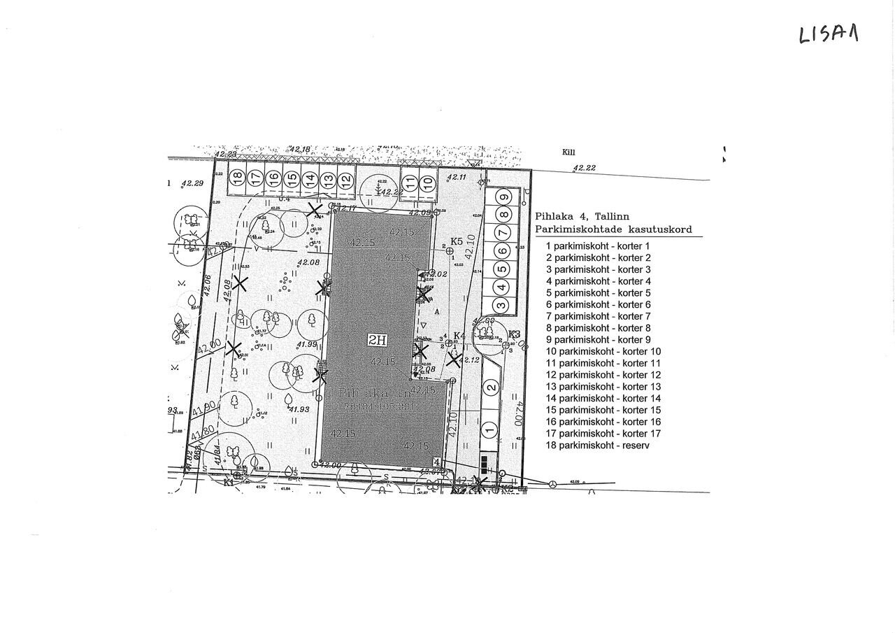 Iga korteri juurde kuulub üks notariaalse kasutuskorraga kinnitatud parkimiskoht maja territooriumil ja panipaik.