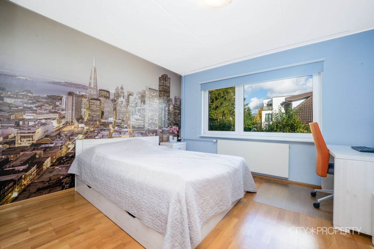 Suuremas magamistoas mahukas garderoobikapp. Magamistoale annab avarust ja valgust suur maast laeni aken ning prantsuserõdu.