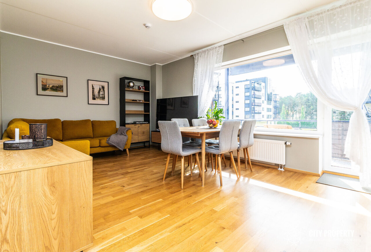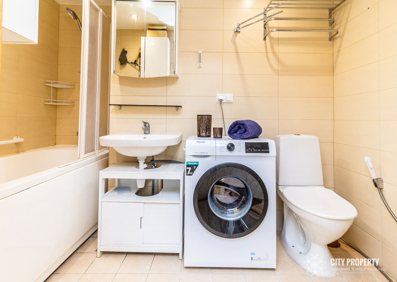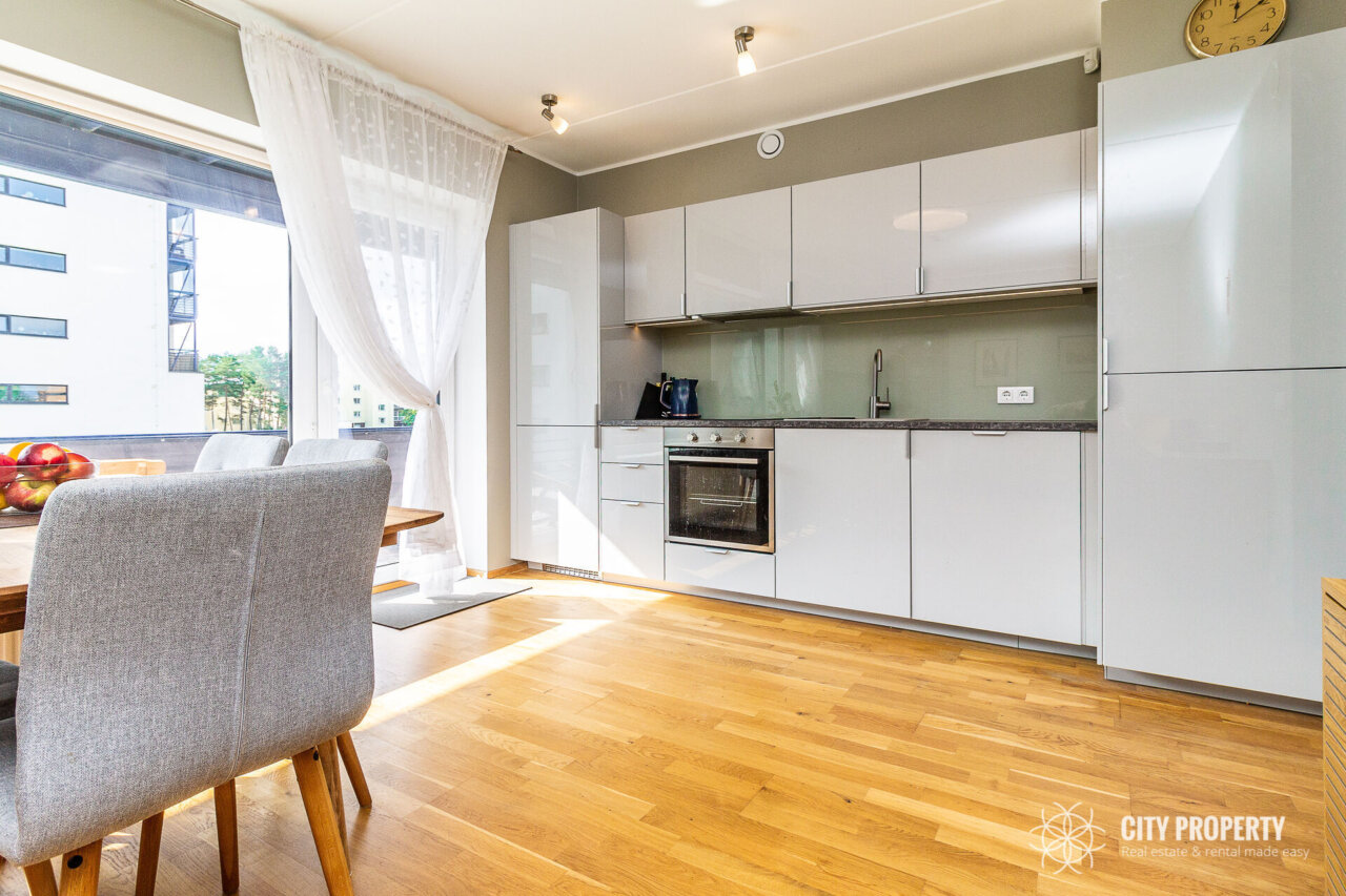 Köök on sisustatud köögimööbli ja tehnikaga (elektripliit, elektriahi, nõudepesumasin, õhupuhasti, külmik). Vannitoas on olemas vannitoamööbel ja pesumasin.