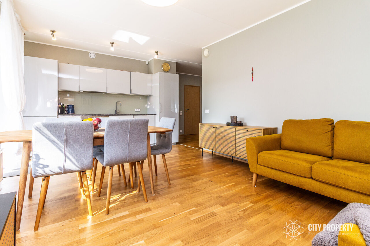 Selle kodu koosseisu kuulub avar esik, walk-in garderoob, ruumikas elutuba koos avatud köögiga, millest pääseb 14,8m2 suurusele rõdule, 2 eraldi asetsevat magamistuba, wc/vannituba.